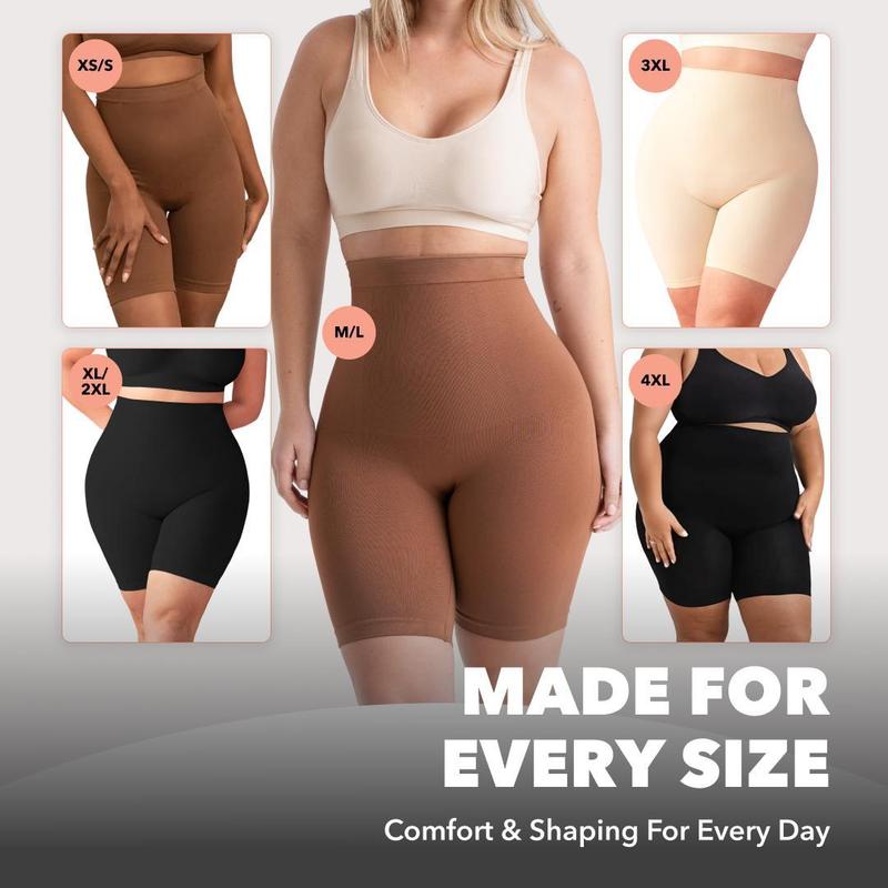 The Shapermint High-Waisted Seamless Shapewear Shorts are designed for comfortable everyday wear, offering a smooth, supportive fit from the waist through the thighs. Made with lightweight, breathable, and stretchy fabric, these seamless shorts allow flexibility for daily movement while maintaining a smooth appearance under clothing. The high-waisted design provides extended coverage, while built-in support elements help them stay in place throughout the day. And because they cover the thighs, they help prevent chafing, making them perfect for all-day comfort in any outfit or activity.