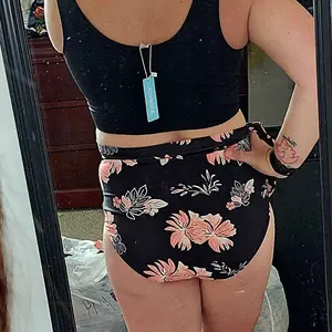 ·Two Piece Bathing Suit: This modest bikini set includes a wireless bra. The crop top has a scoop neck and a U-back for an eye-catching look. The full coverage bottom offers tummy control.