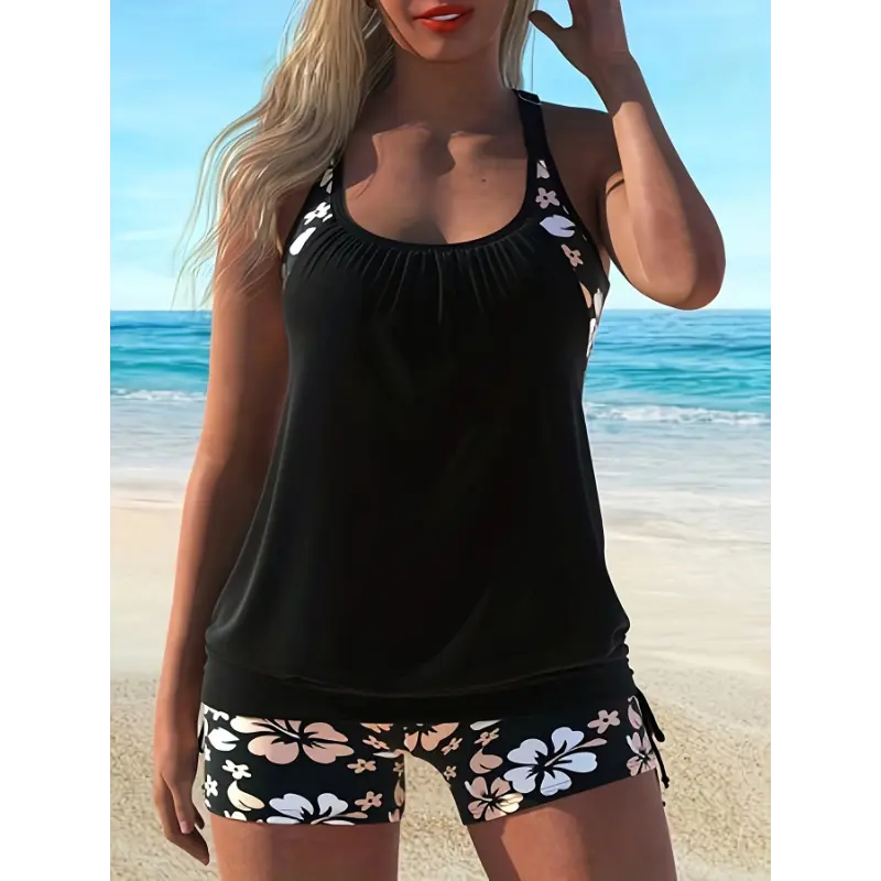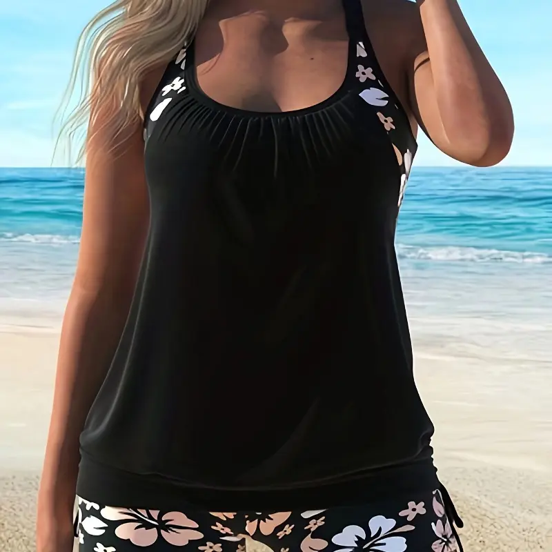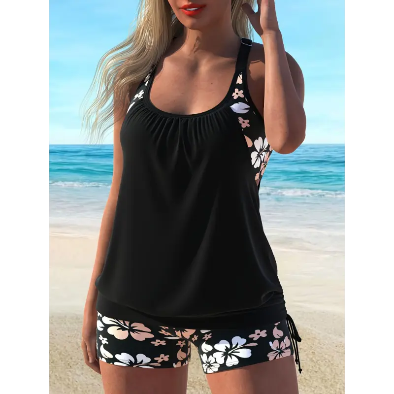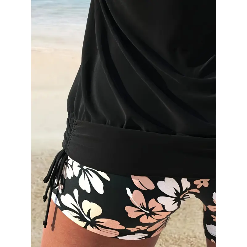 Elevate your swimwear game with the High-Waisted Tummy Control Bikini Set for Plus Size Women. This LB454055 set features a floral pattern, perfect for curvy swimwear enthusiasts. Crafted from a polyester elastane blend, it offers high stretch for comfort. The set holds the belly and covers the lower stomach, ensuring no roll-down. Ideal for those seeking both style and functionality.