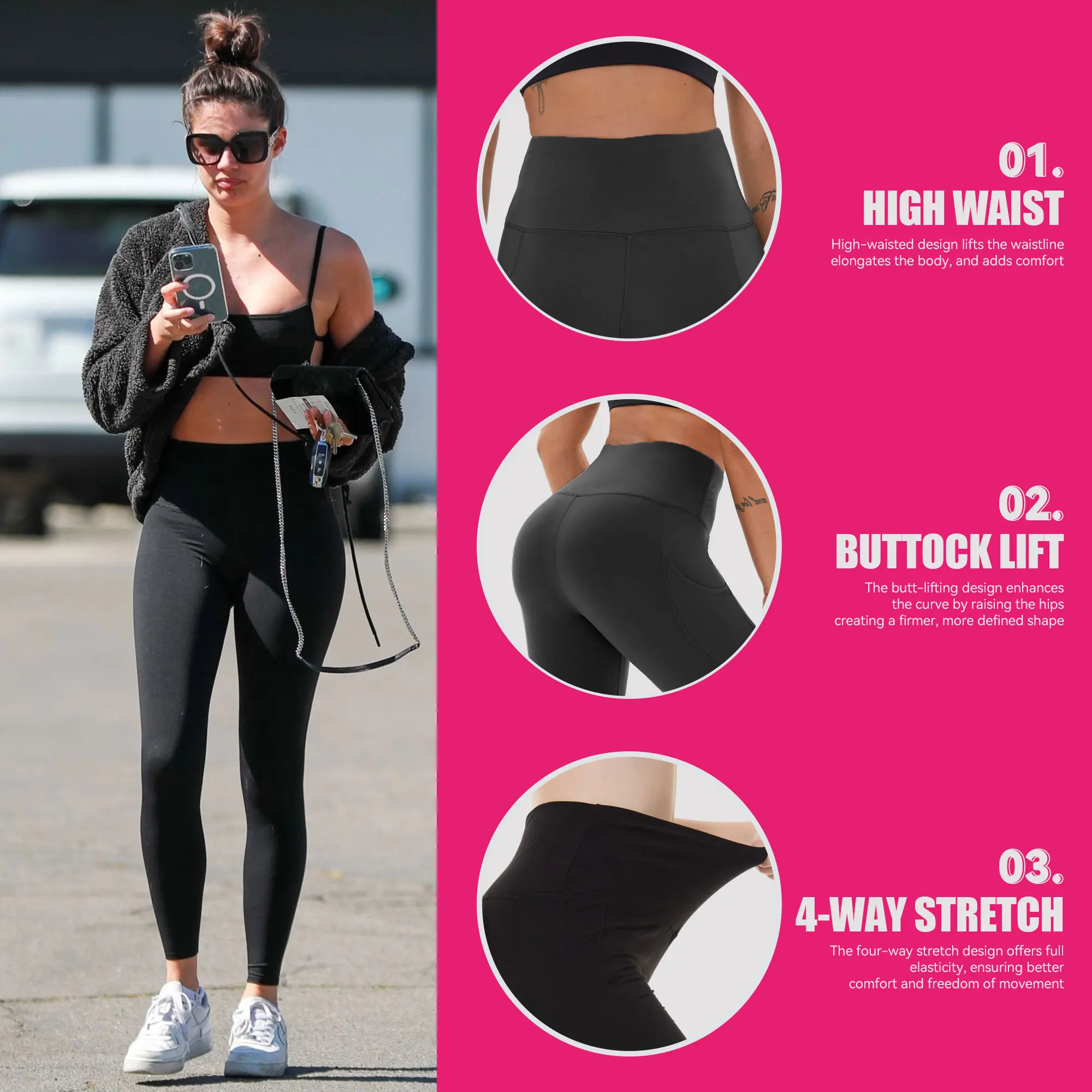 I love these leggings. They are true to size and have a pocket on each side to hold a cell phone or whatever. Shipment came quick. They do not bunch up or get baggy.