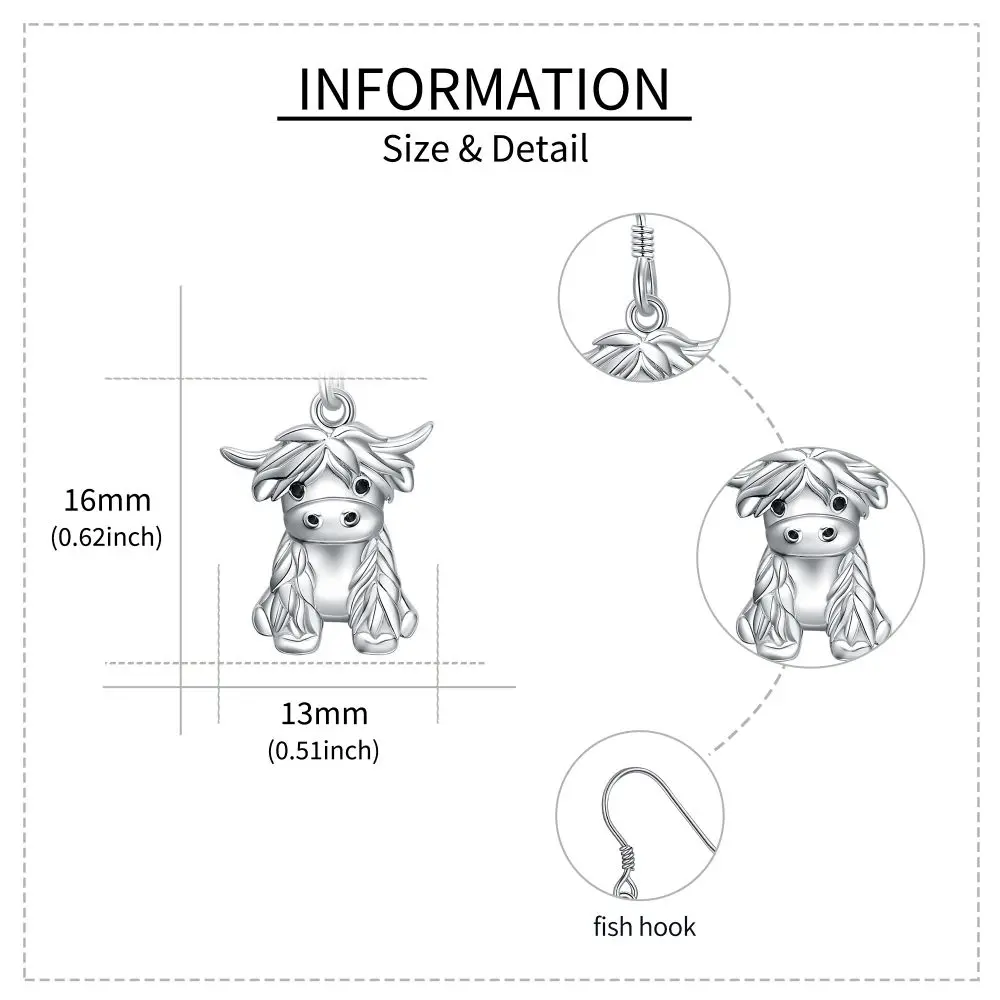 5. Highland Cow Dangle Earrings Sterling Silver Drop Earrings