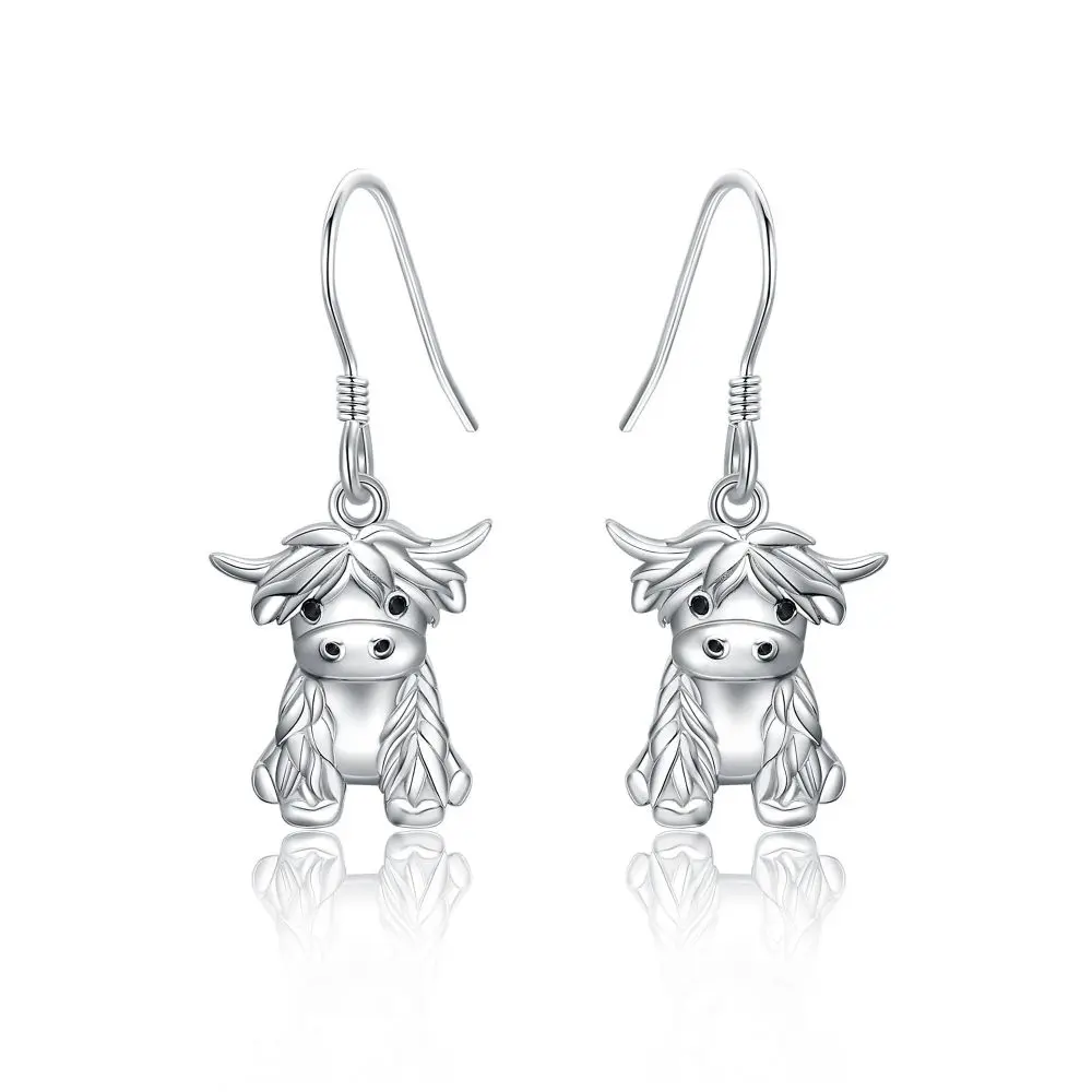 Highland Cow Dangle Earrings Sterling Silver Drop Earrings