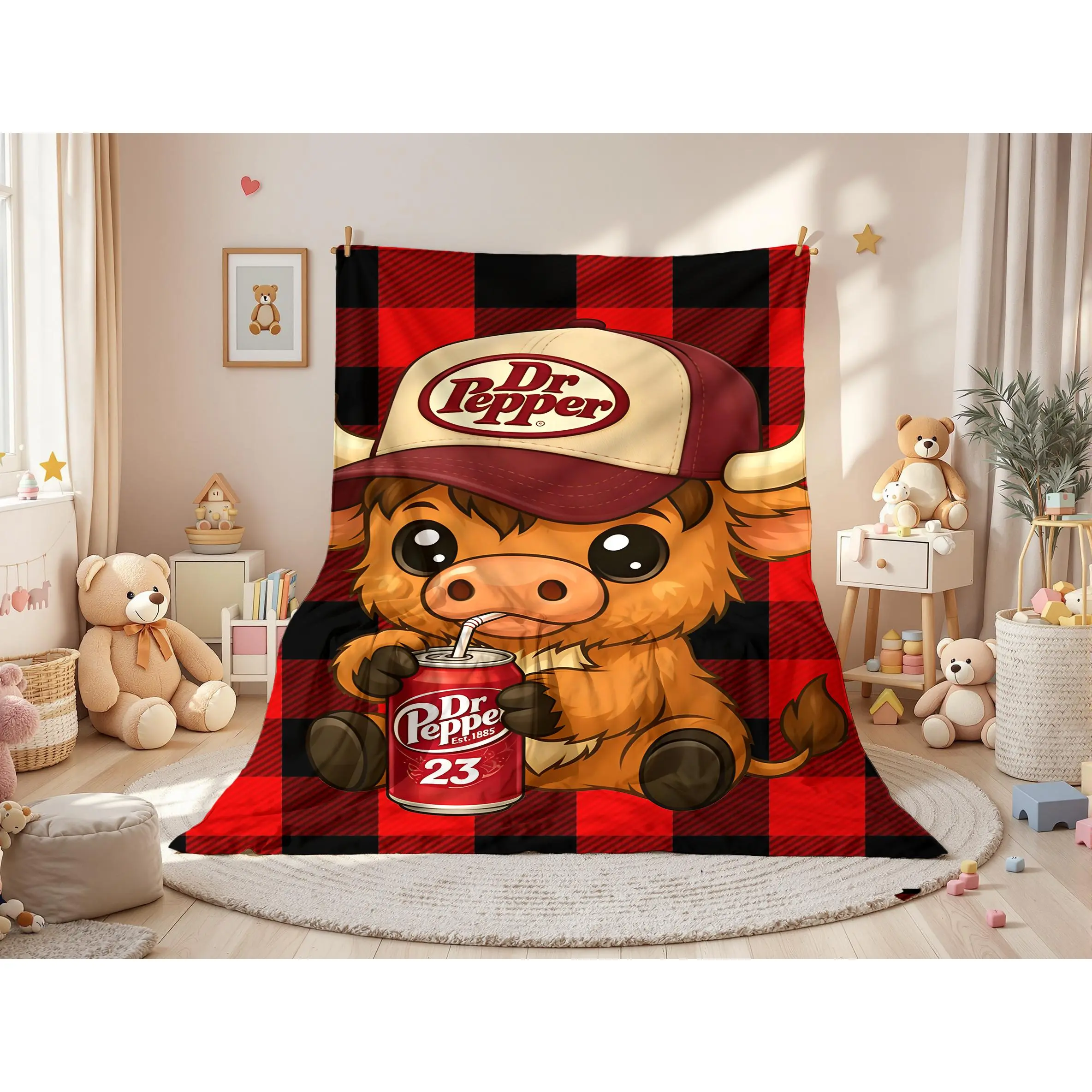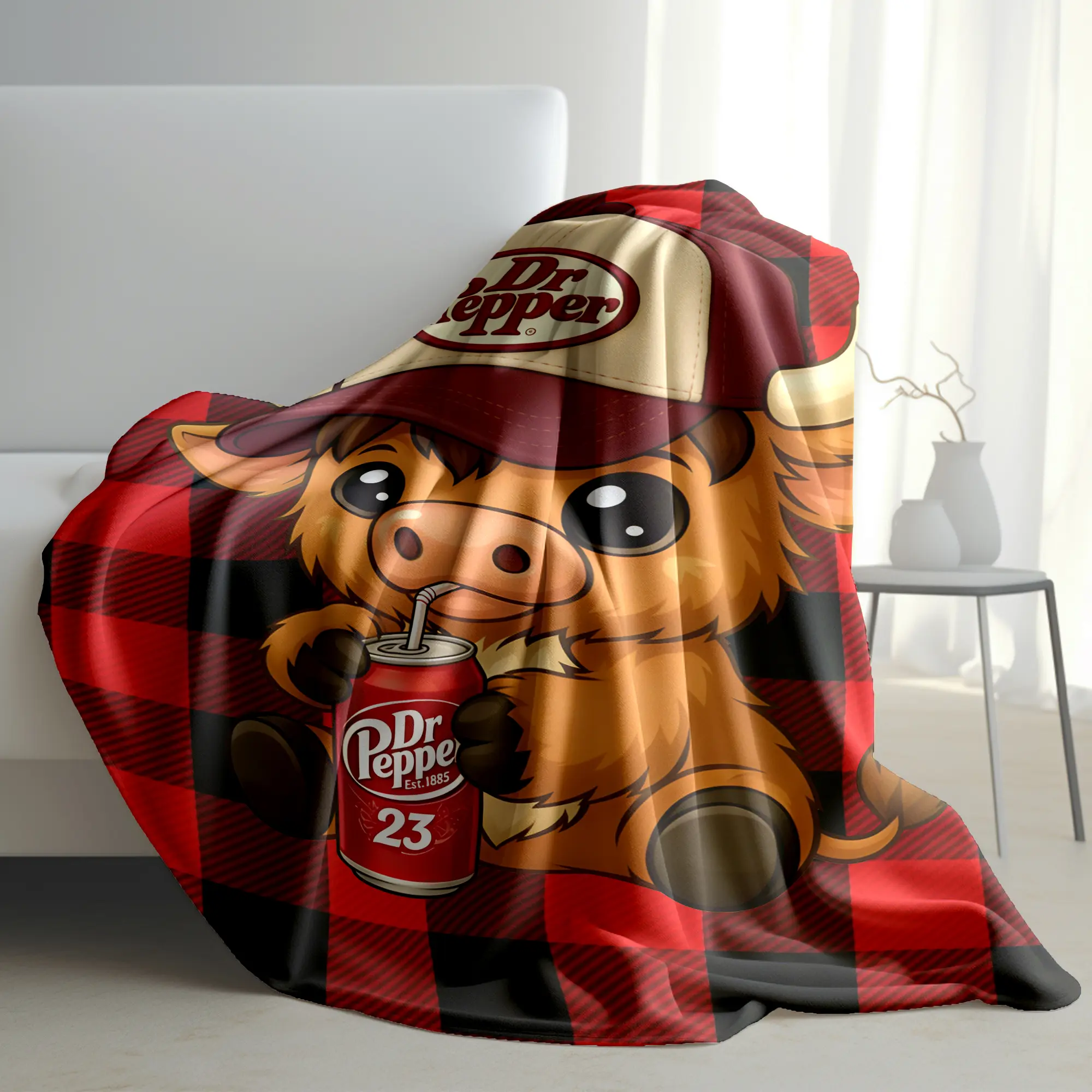 Highland cow blanket with Dr Pepper#highlandcow #DrPepper #drpepperlover #blanket #fyp