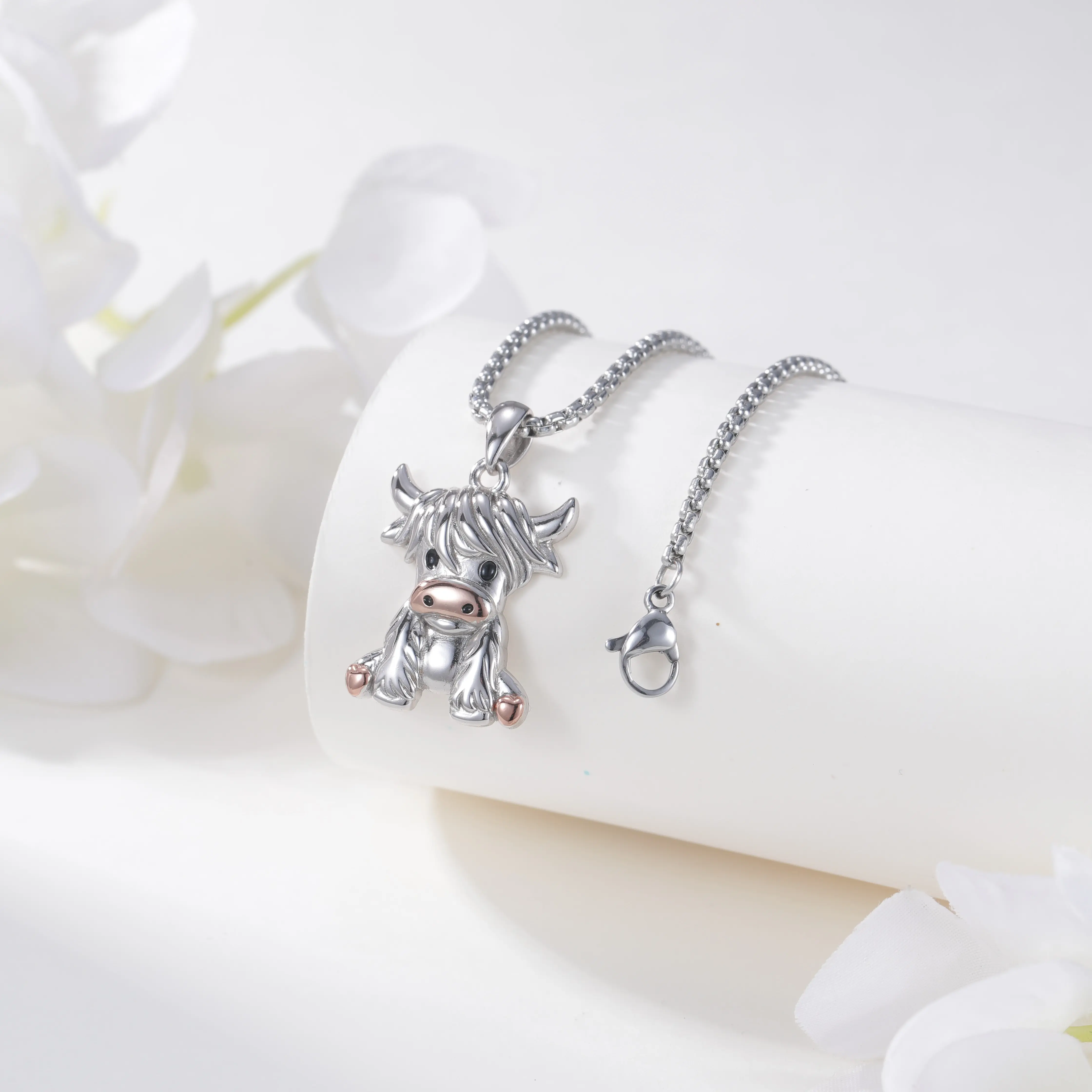 STERLING SILVER- highland cow necklace is made of 925 sterling silver,nickel-free,lead-free,cadmium-free,and hypoallergenic. Suitable for long-term wear.
