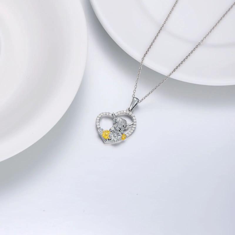 5. Highland Cow Sunflower Heart Zircon Necklace Sterling Silver Cute Scotland Cow Gift