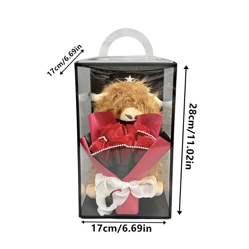 Highland Cow Plush Doll with Everlasting Realistic Flower Bouquet, Perfect Decorative Plush Doll, Valentine's Day Gift, Mother's Day Gift, Best Gift for Grandma