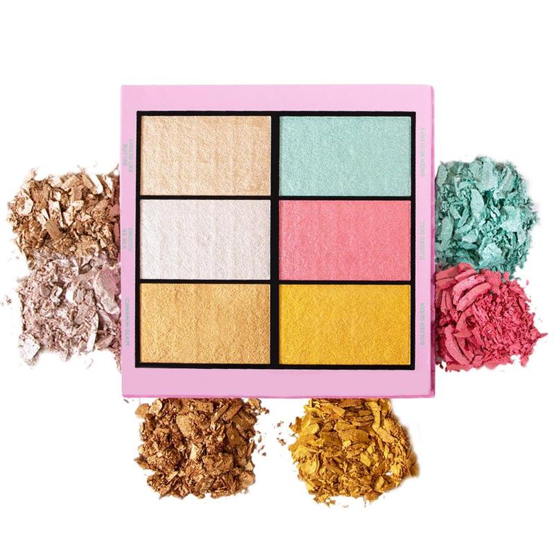 KimChi Chic Drama Queen Cosmetics Highlighter and Blush Palette - 6 Shimmery Colors for Flawless Makeup