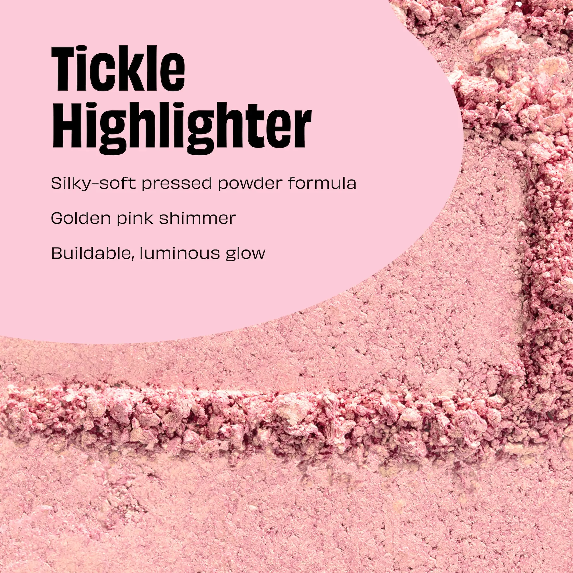 We’re tickled pink—golden-pink, to be specific—about Tickle powder highlighter. This superfine powder formula will have you feeling super fine yourself —just sweep it across your cheekbones for instant radiance with a subtle shimmer. Plus, it’s buildable and blends seamlessly, so you can grow your glow by sweeping it on layer after layer. (Giggles encouraged, but not required.)