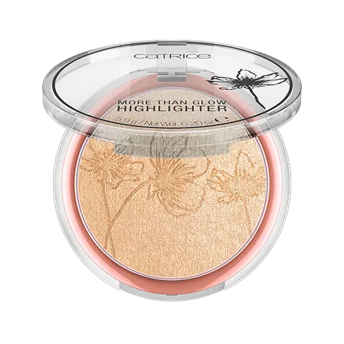 The Catrice More Than Glow Highlighter pressed powder highlighter has a silky soft texture that gently blends with your complexion giving it a subtle glow with metallic shimmering effects.