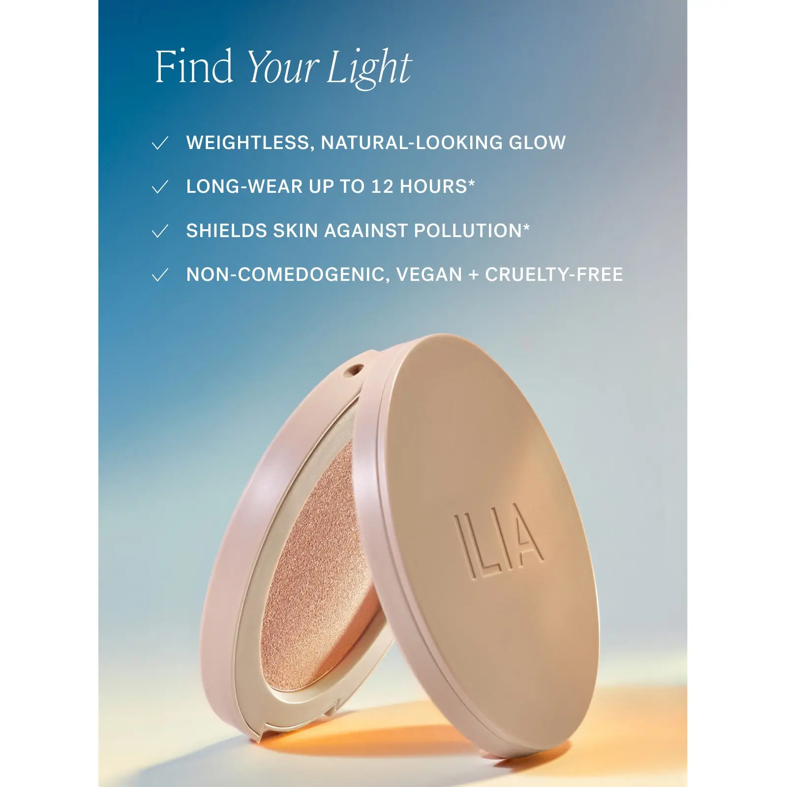 Find your light. This luminous, non-comedogenic highlighter shifts from a silky cream to a weightless powder, blending seamlessly for natural radiance that lasts up to 12 hours. Boosted with potent antioxidants, it’s clinically proven to help shield skin against pollution. Choose from 3 shades for a blurred, healthy-looking glow.