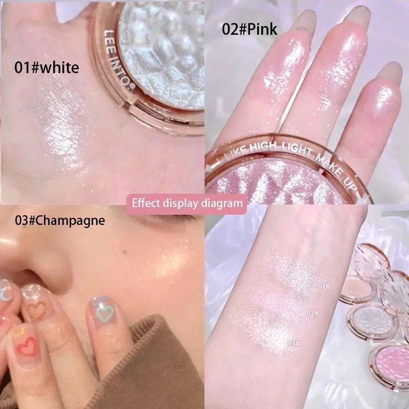 These highlighters are beautiful and very shimmery. Great as an eye topper or corner of the eye. On the body for some shimmering glow and the face. Worth the price for all three and a definite must buy.