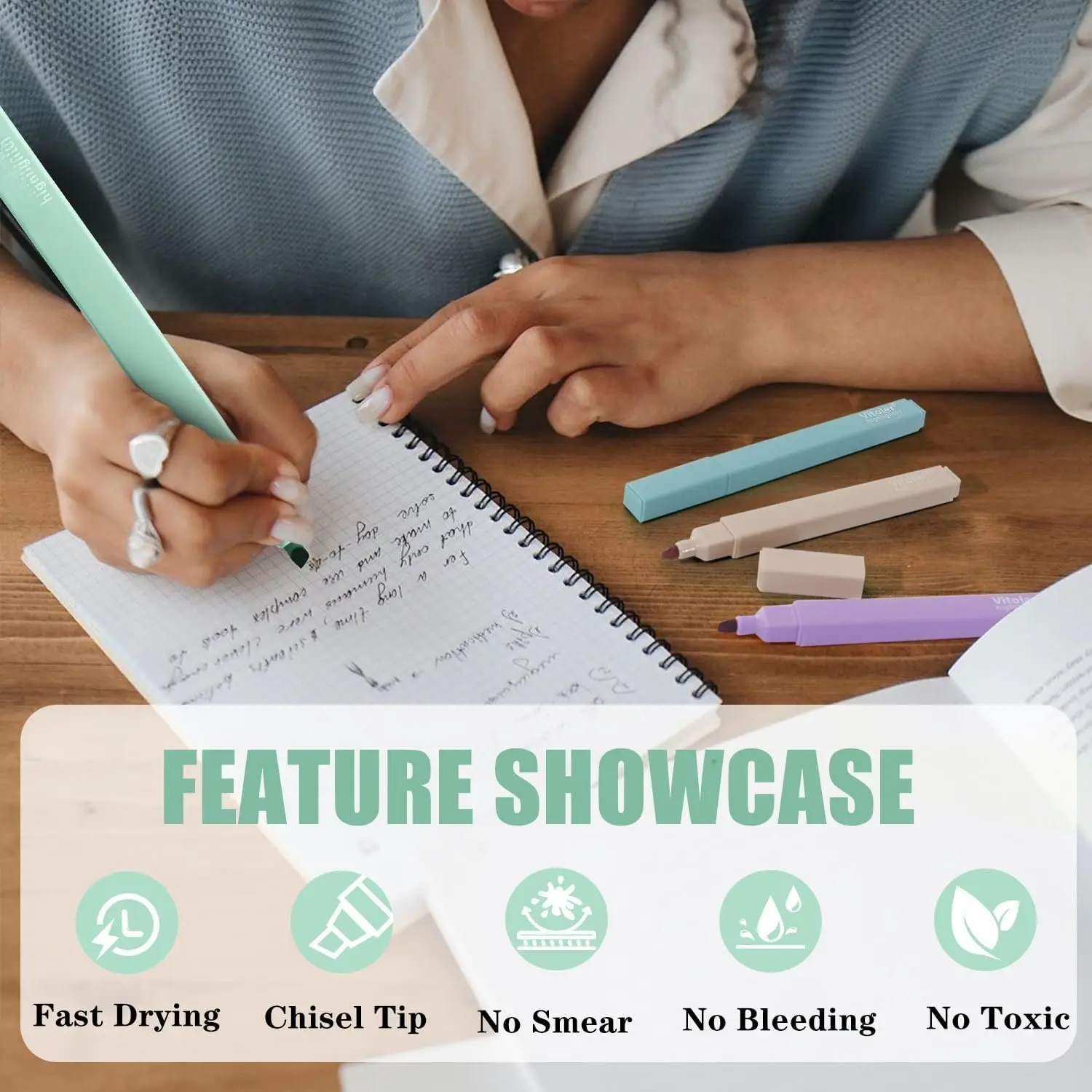 Chisel Tip: The chisel tip lets you between broad strokes for emphasis and fine lines for underlining. It is ideal for detailed note-taking, journals, or color-coding with control