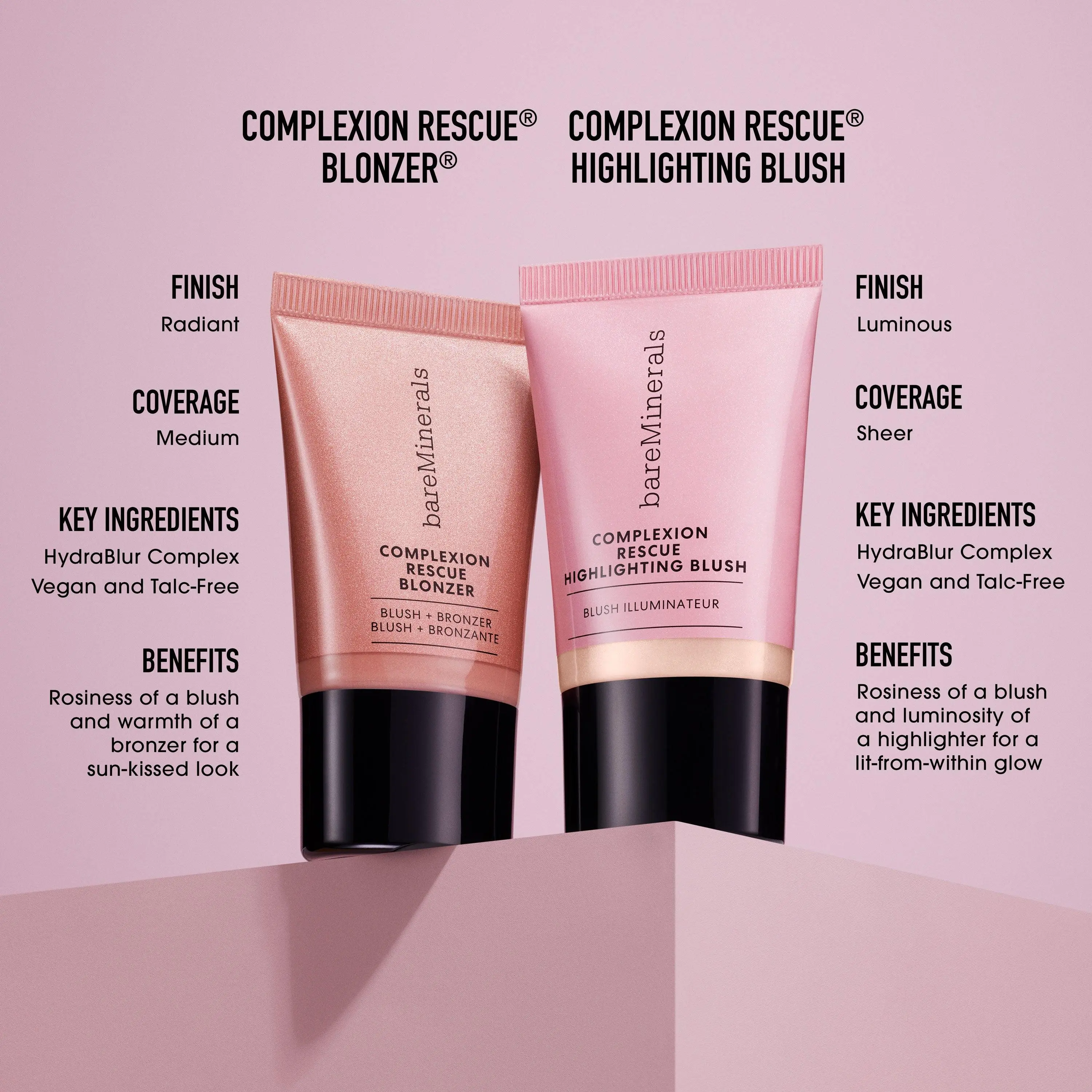 Blush highlighter features a creamy texture that blends seamlessly for a translucent glow