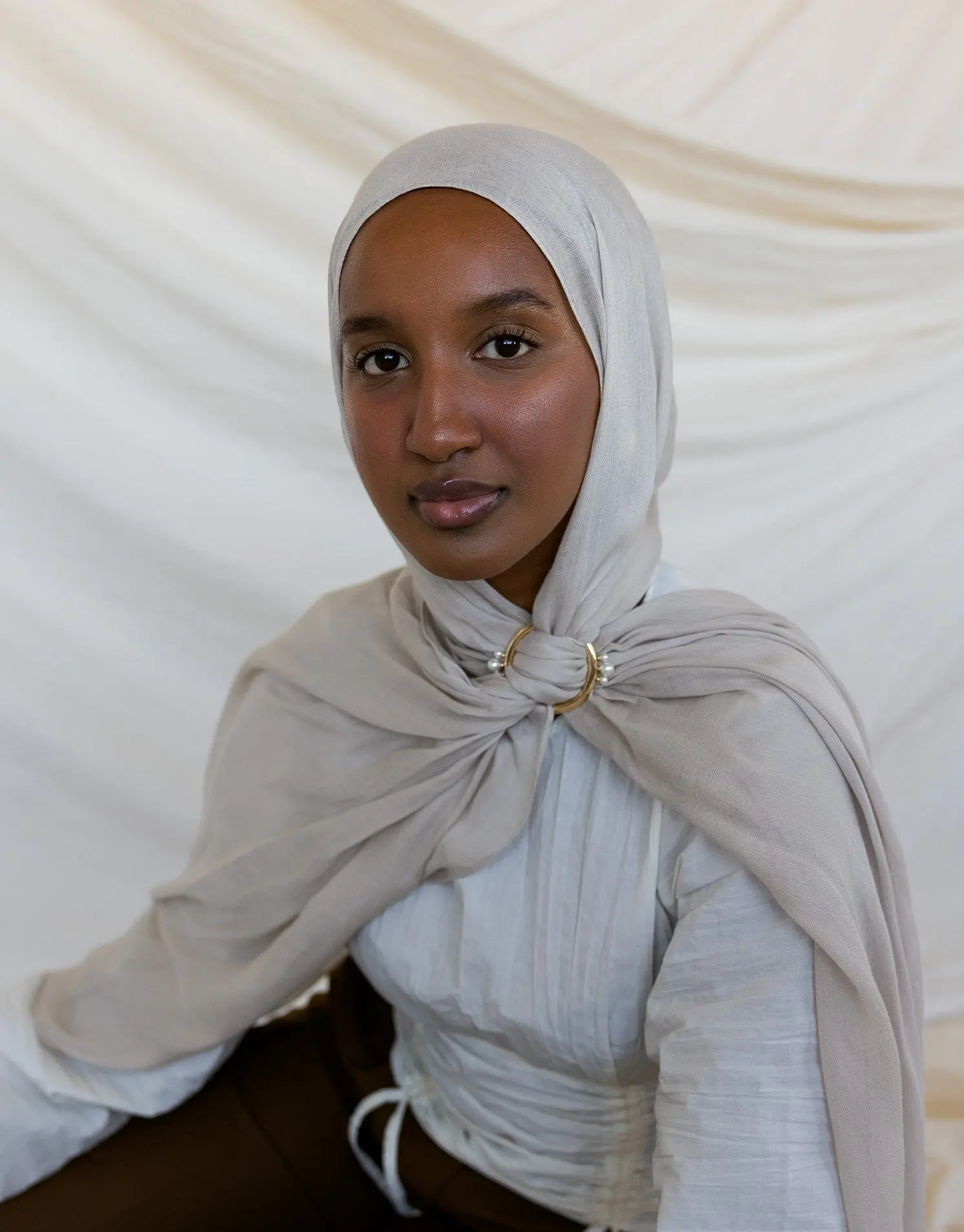 It’s perfect for formal occasions or a clean girl look, I love light colored hijabs