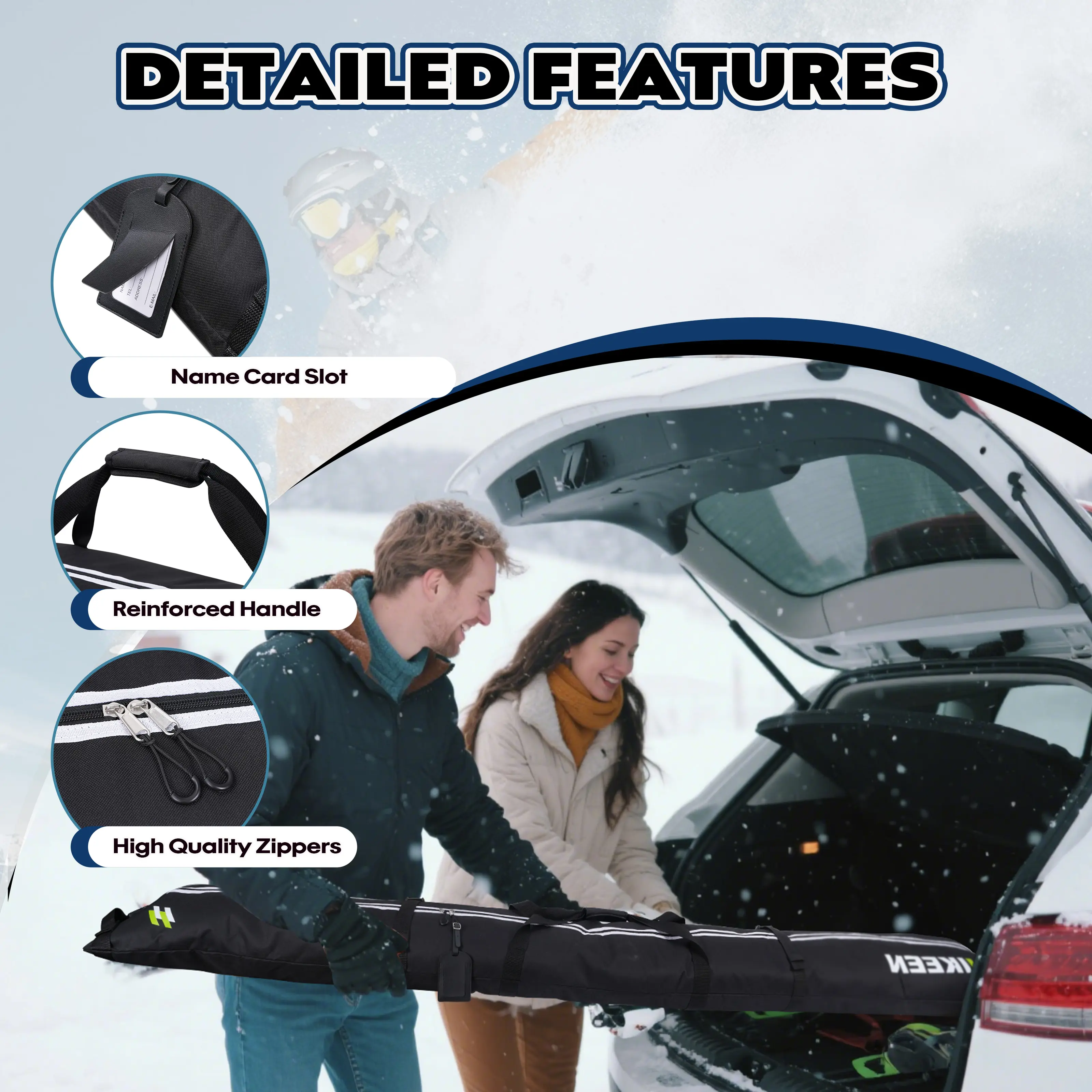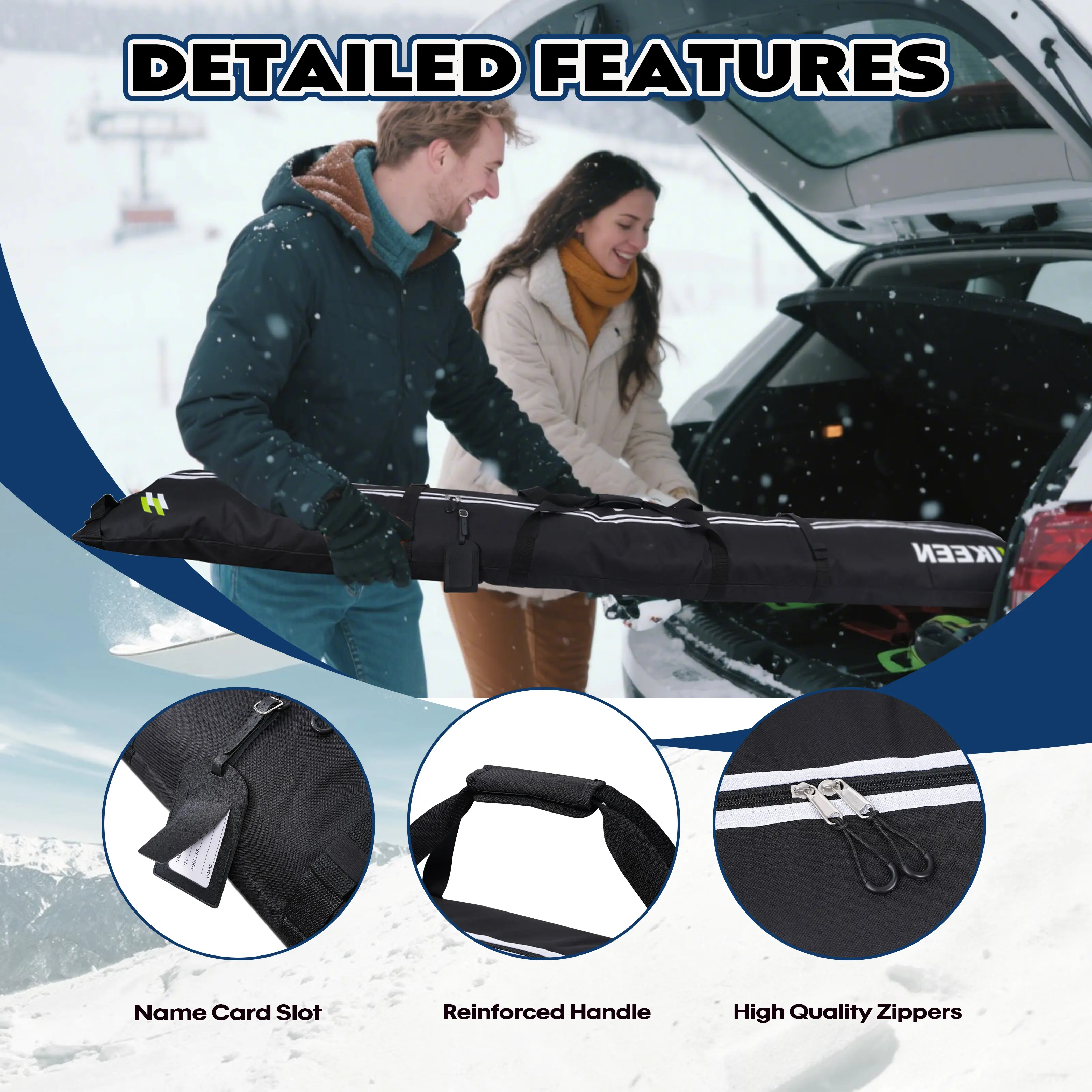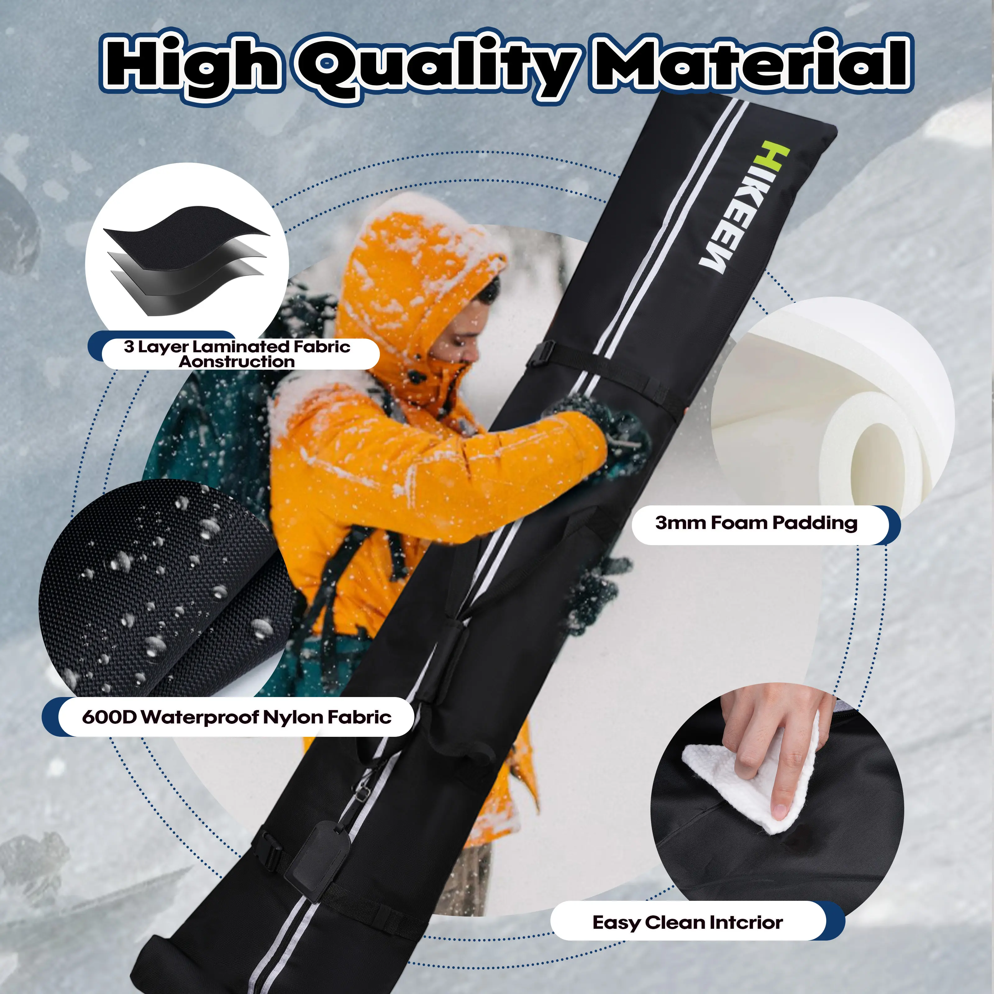 ·【Padded Ski Bag】Our ski travel bag features 3mm thick padding throughout to protect your skis, poles, snowboards, and valuable gear during transport and storage, ensuring your equipment remains well-protected when you go skiing.