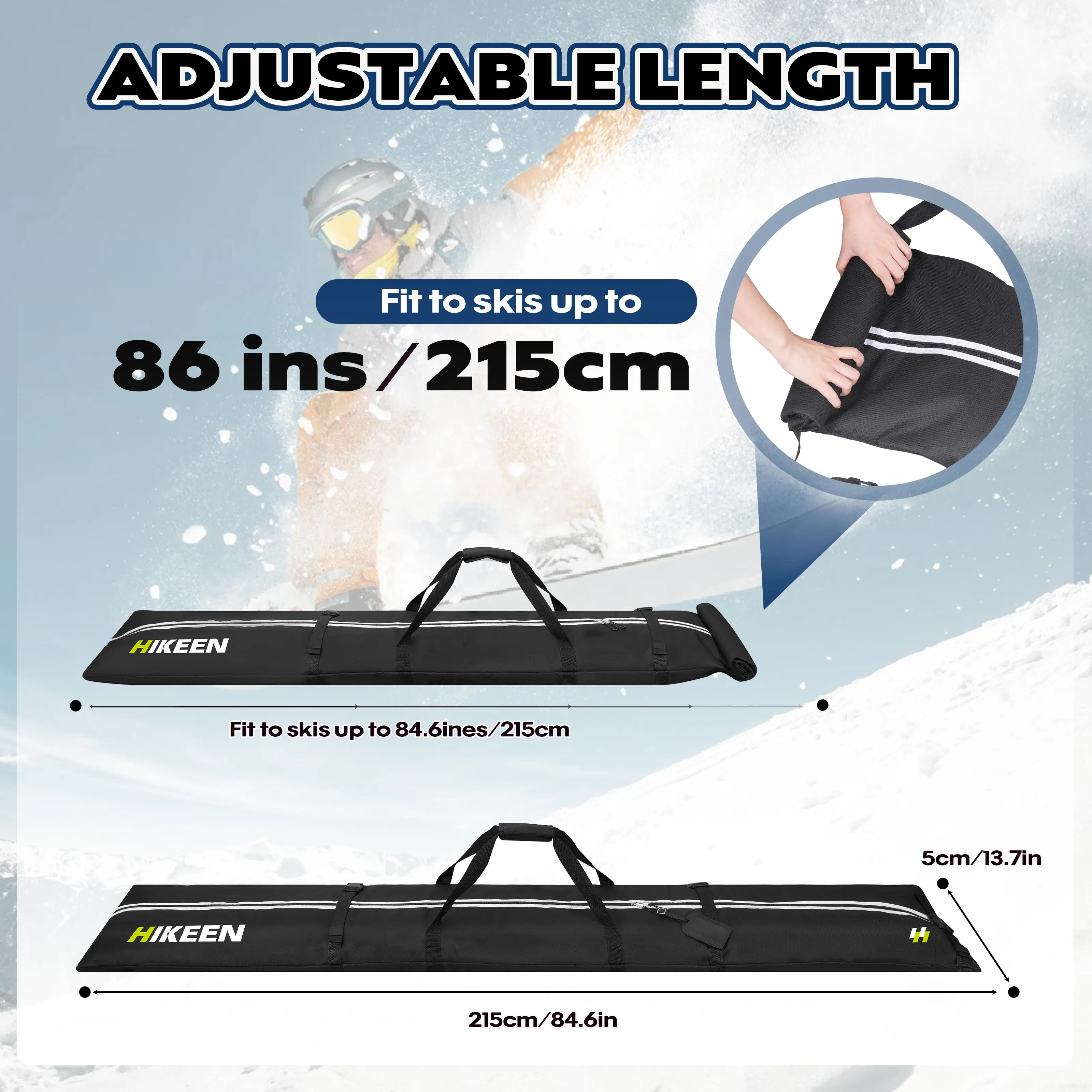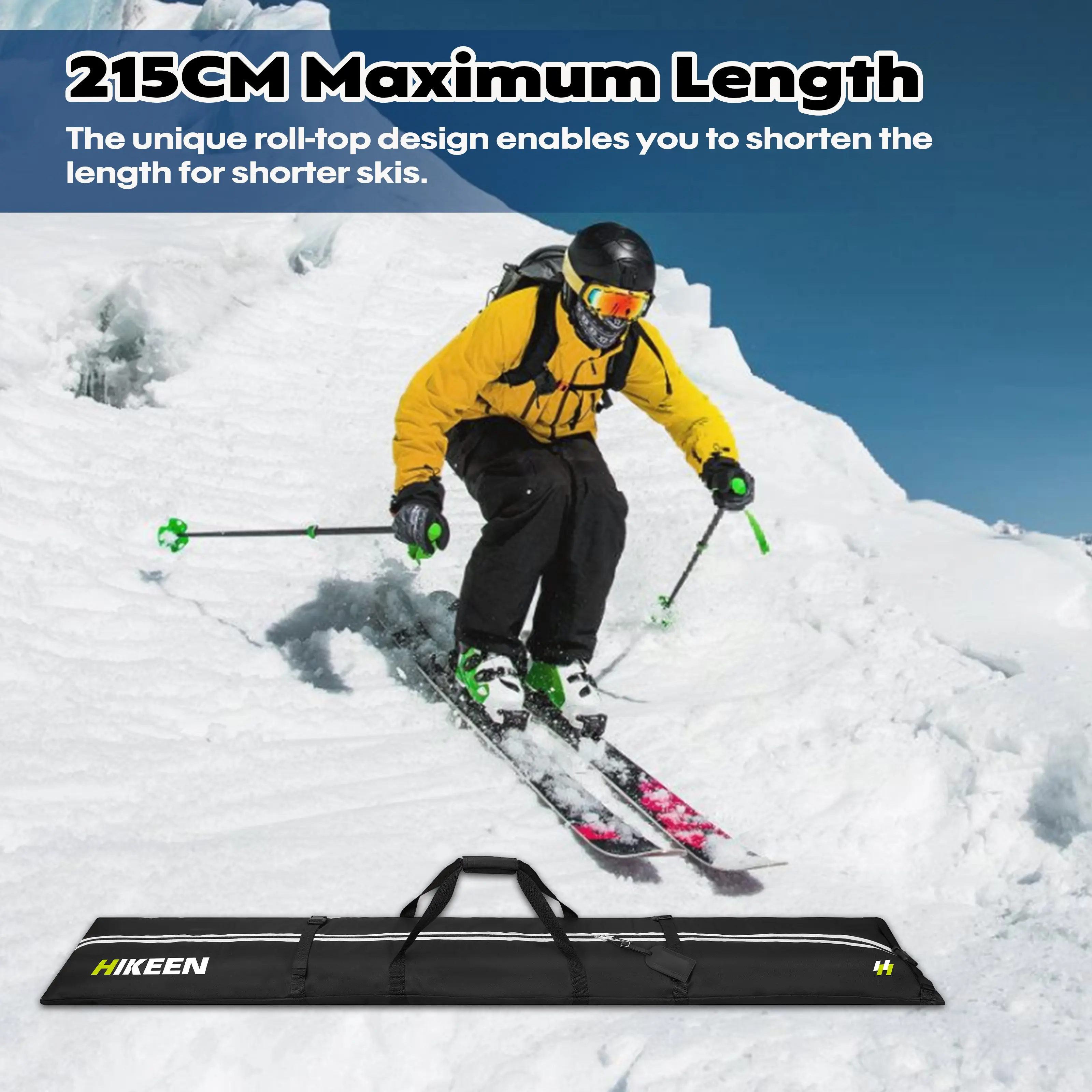 ·【Adjustable Design】The ski bags for air travel features roll-top that allows the bag's length to be adjusted to 215 cm/84.6in(unrolled).It accommodates a pair of skis/snowboards and enough space to store poles, clothes, gloves, hats etc.