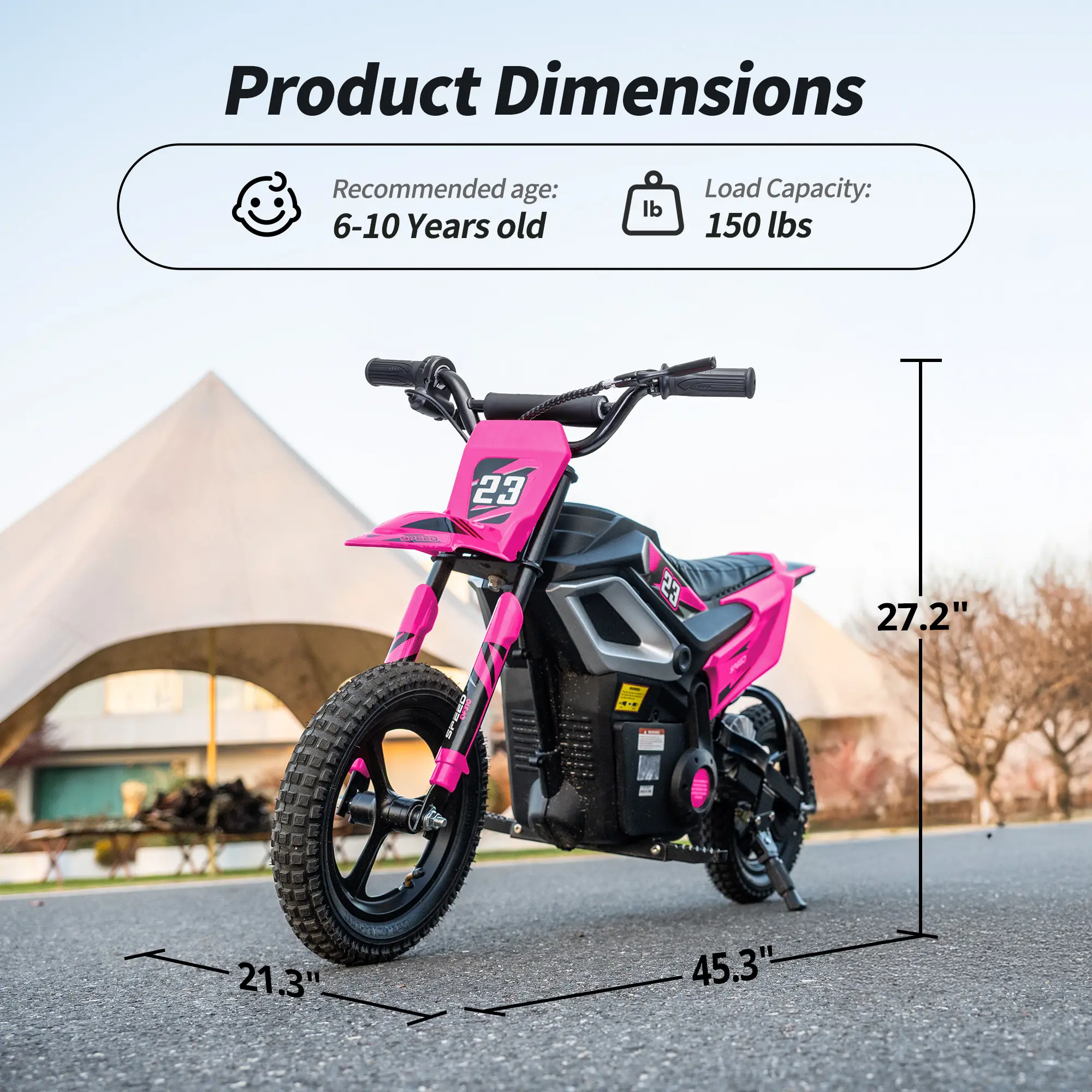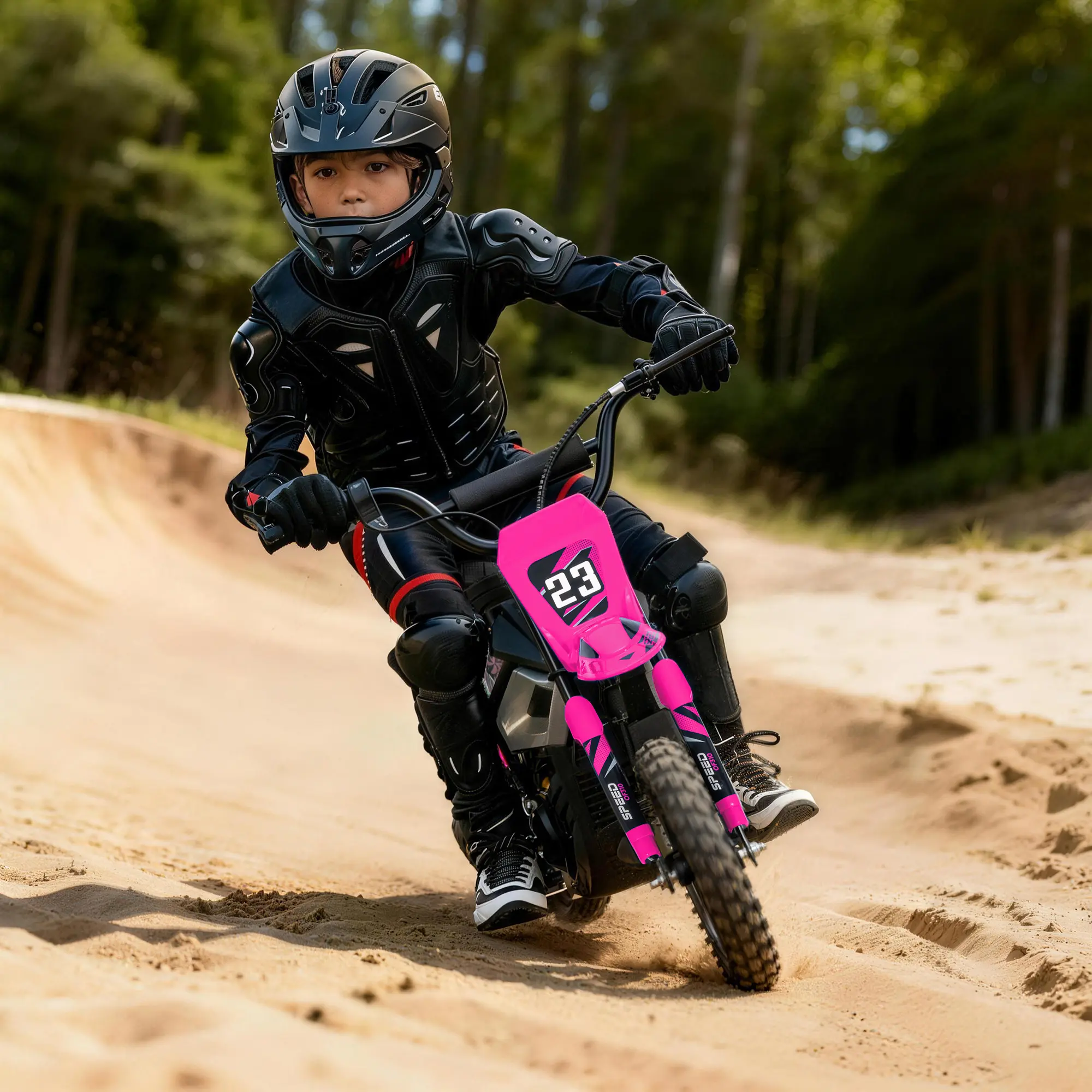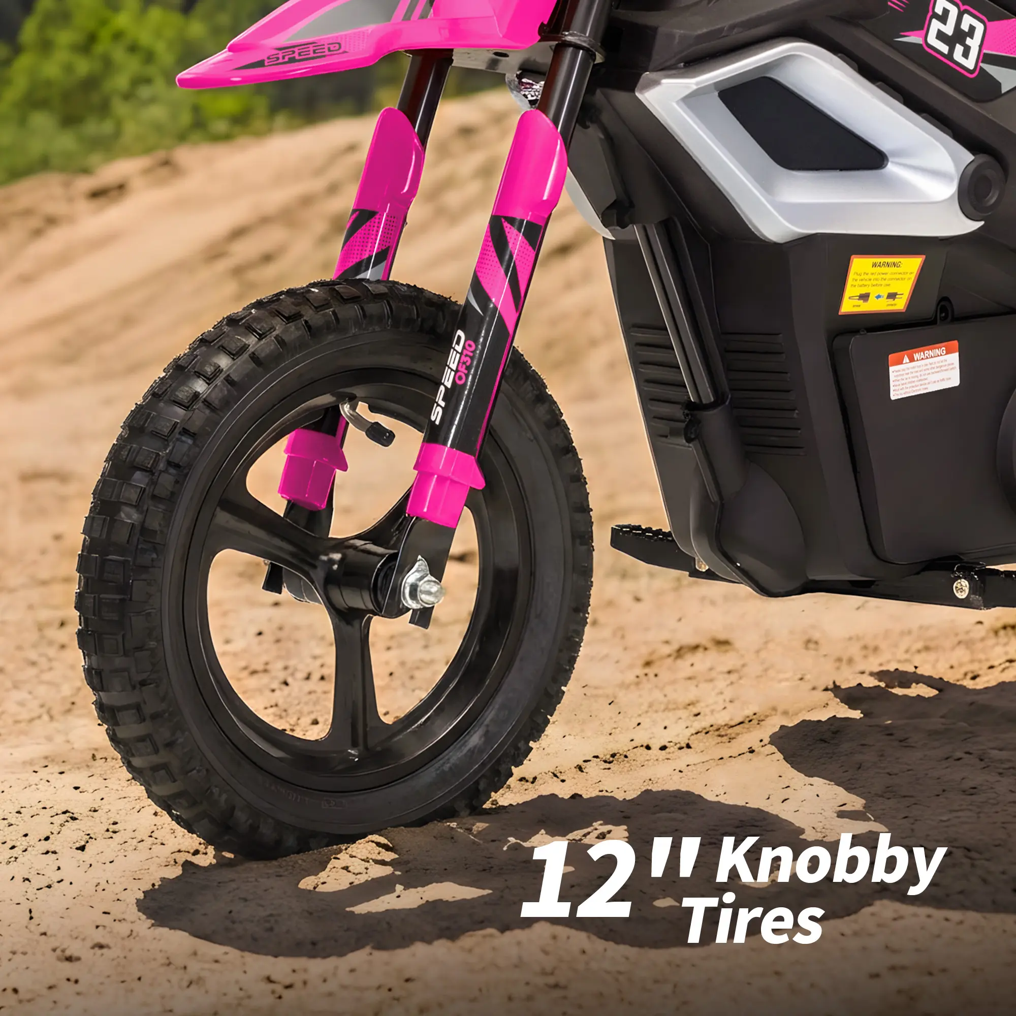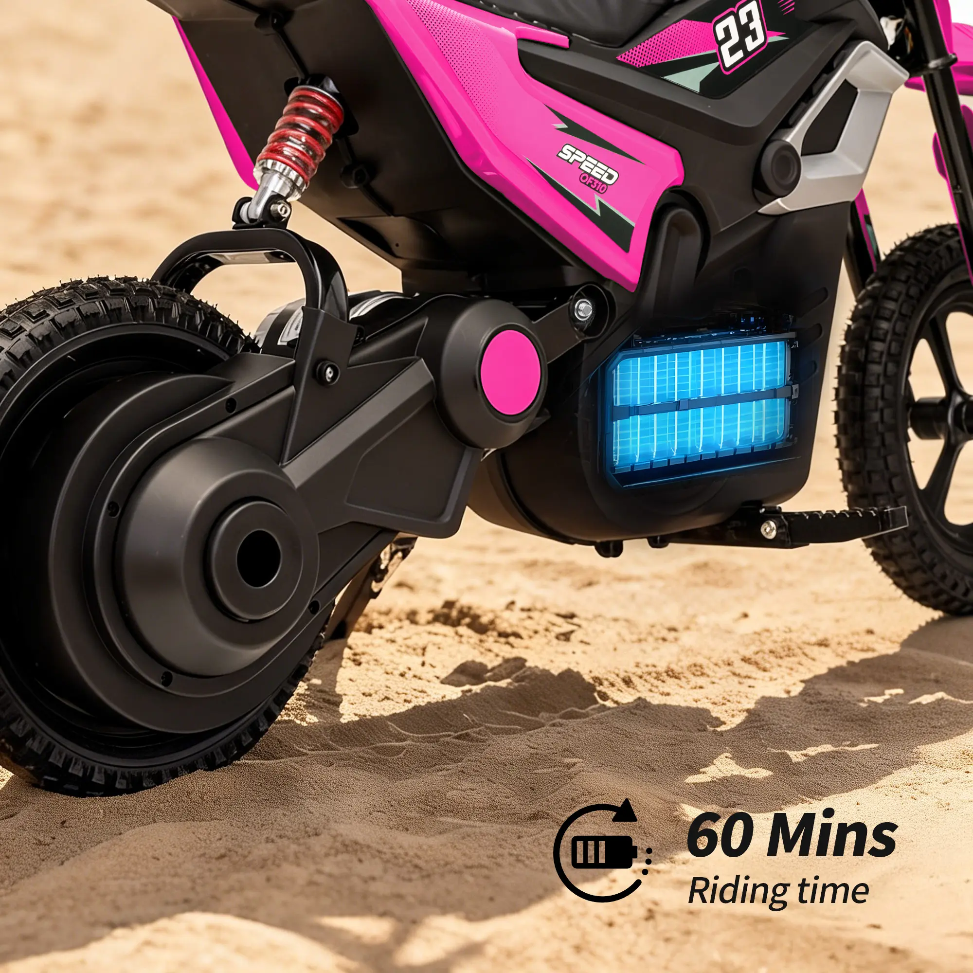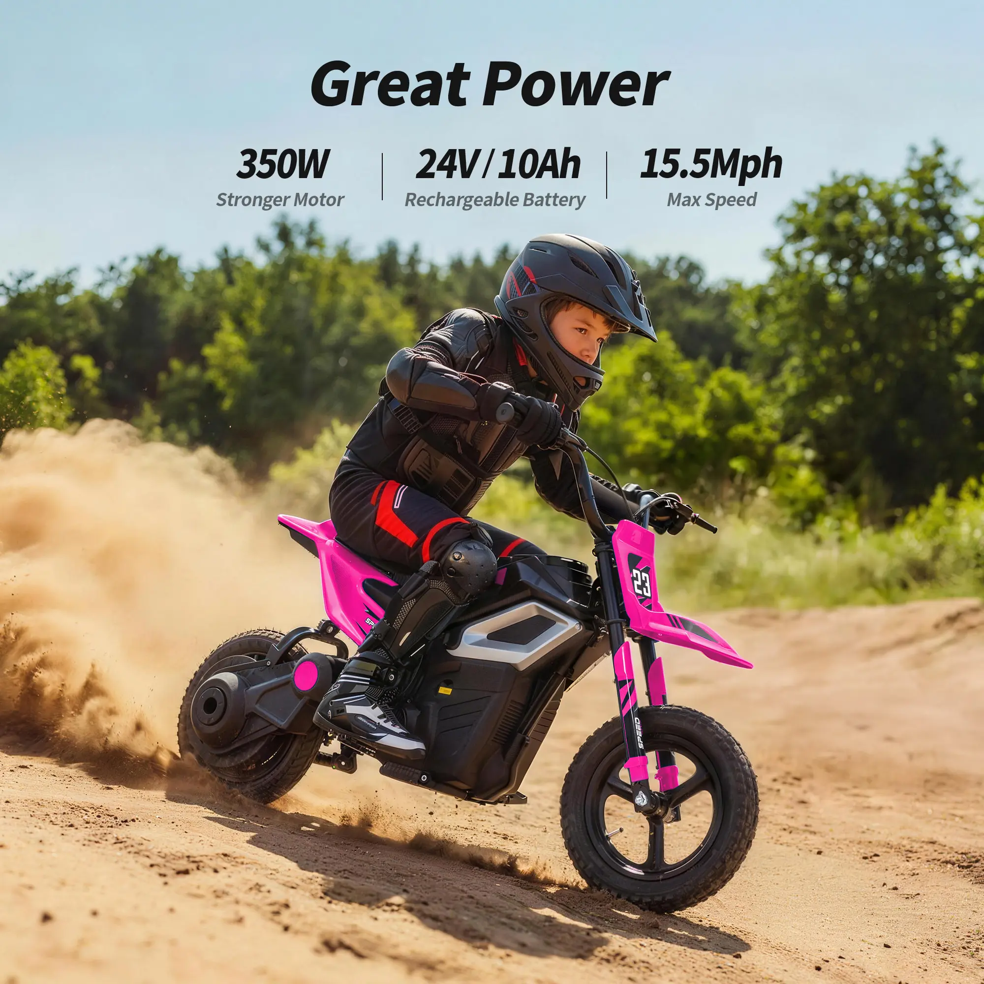 This isn't just a kids ride on toy; it's a high-performance 24V 350W Electric Kids Motorcycle built for mini-pro riders. With a strong frame, shock-absorbing wheels, and a manual throttle, this Kids off-road motorcycle is great for all terrains. Designed for ages 4 and up, this powerful 24V kids motorcycle offers variable speeds for up to 60 minutes of non-stop fun. Upgrade your kid's ride to a real beast now!