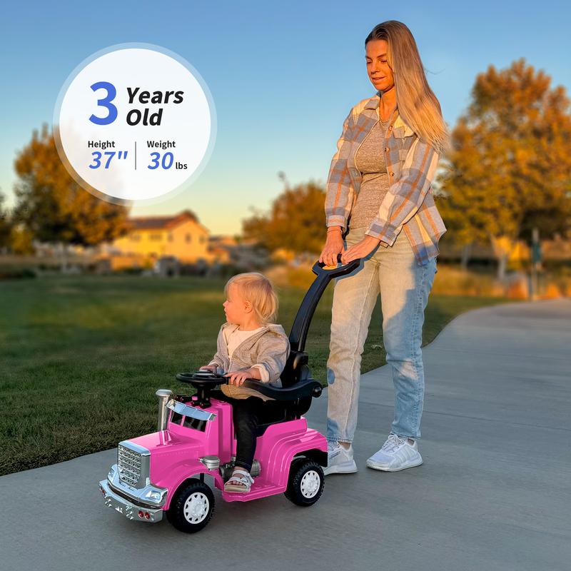 Hikiddo 3-in-1 Push Car with Handle, Kids Ride on Toy for Toddler Aged 1-3, Music & Light