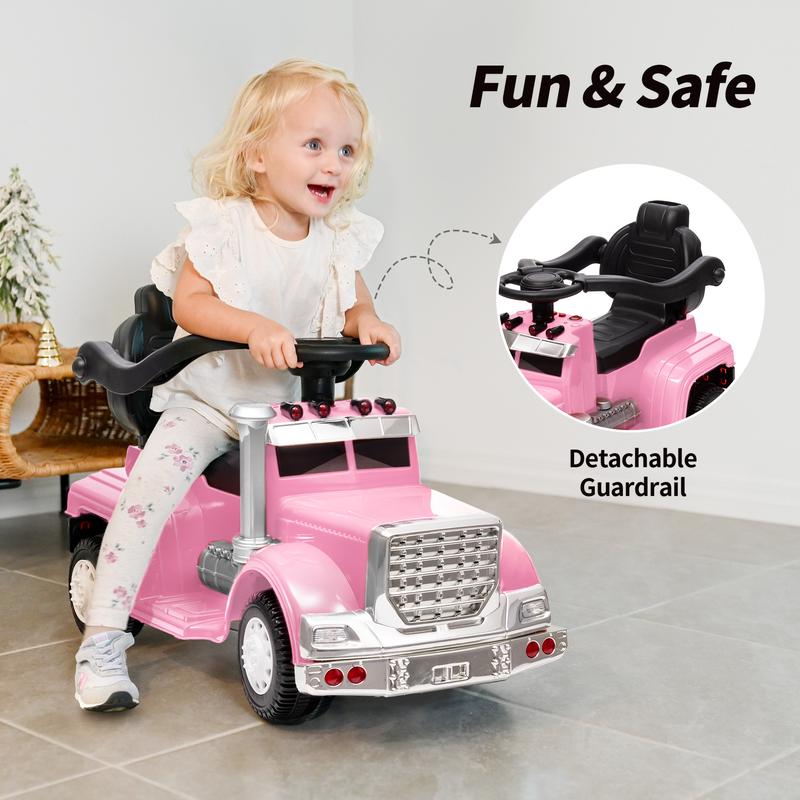 🌟 3-in-1 Design 🌟 The car caters to various growth stages with its 3-in-1 design. It includes a music player for an enjoyable ride. Toddlers can also use the backrest as a putter to learn walking. This enhances their hand-eye coordination skills.