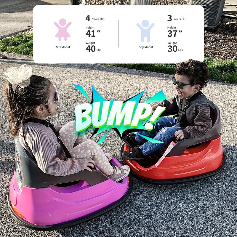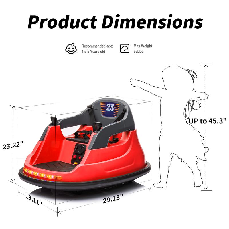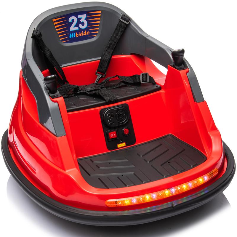 Designed with flashing colorful LED lights which will flicker to the tune of the music, Hikiddo 6V ride on toys for toddlers enhance the fun quotient. 3-speed mode, allowing driving with 1.1mph, 1.5mph, 2.5mph, our bumper car for toddlers 1-3 years old girls boys meets their fun needs. Safety is vital, this bumper car ride on with remote control possesses 5-point safety harnesses and thick full-circle collision strips which not only provide maximum safety for kids but also the furniture and walls. With 360-degree rotation, AUX, and USB connection to play music, 6 volt ride on toys is built for more kid's smiles and greater riding fun. Our electric bumper car have two operating functions to choose from, kids can use dual joysticks which could develop their sense of direction, meanwhile parents also could join the fun via a control remote.