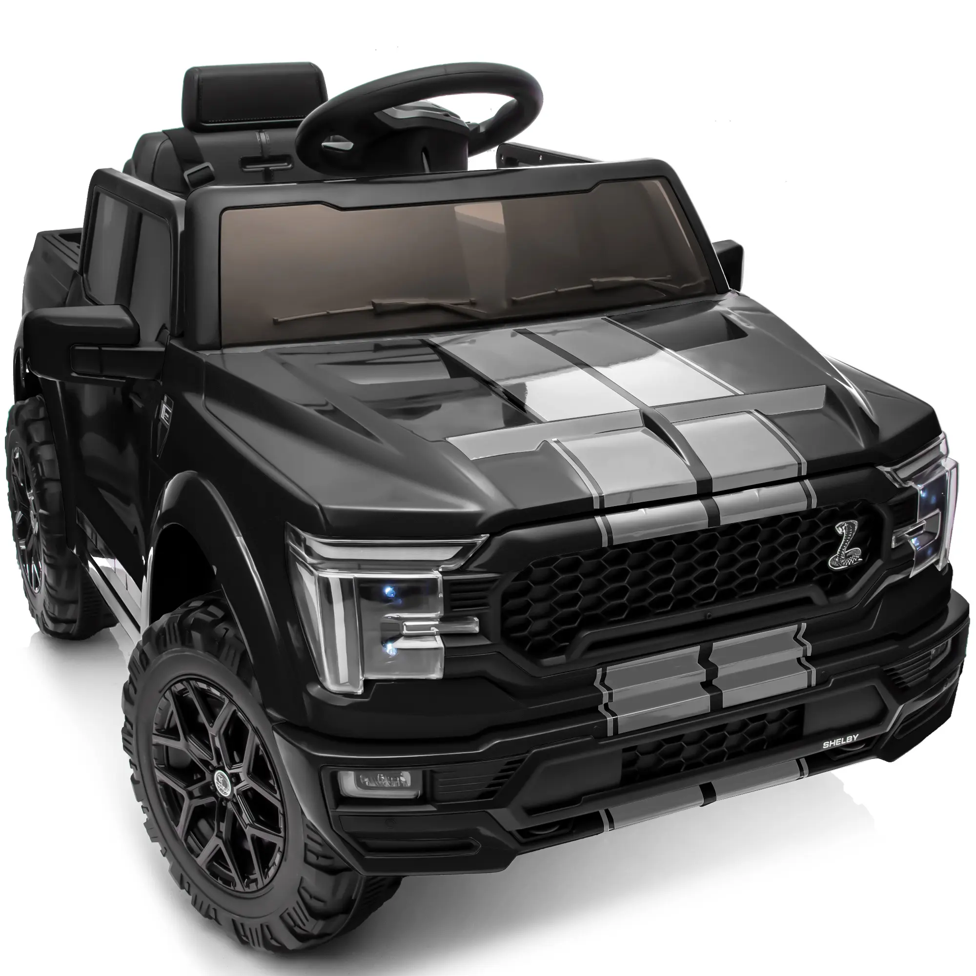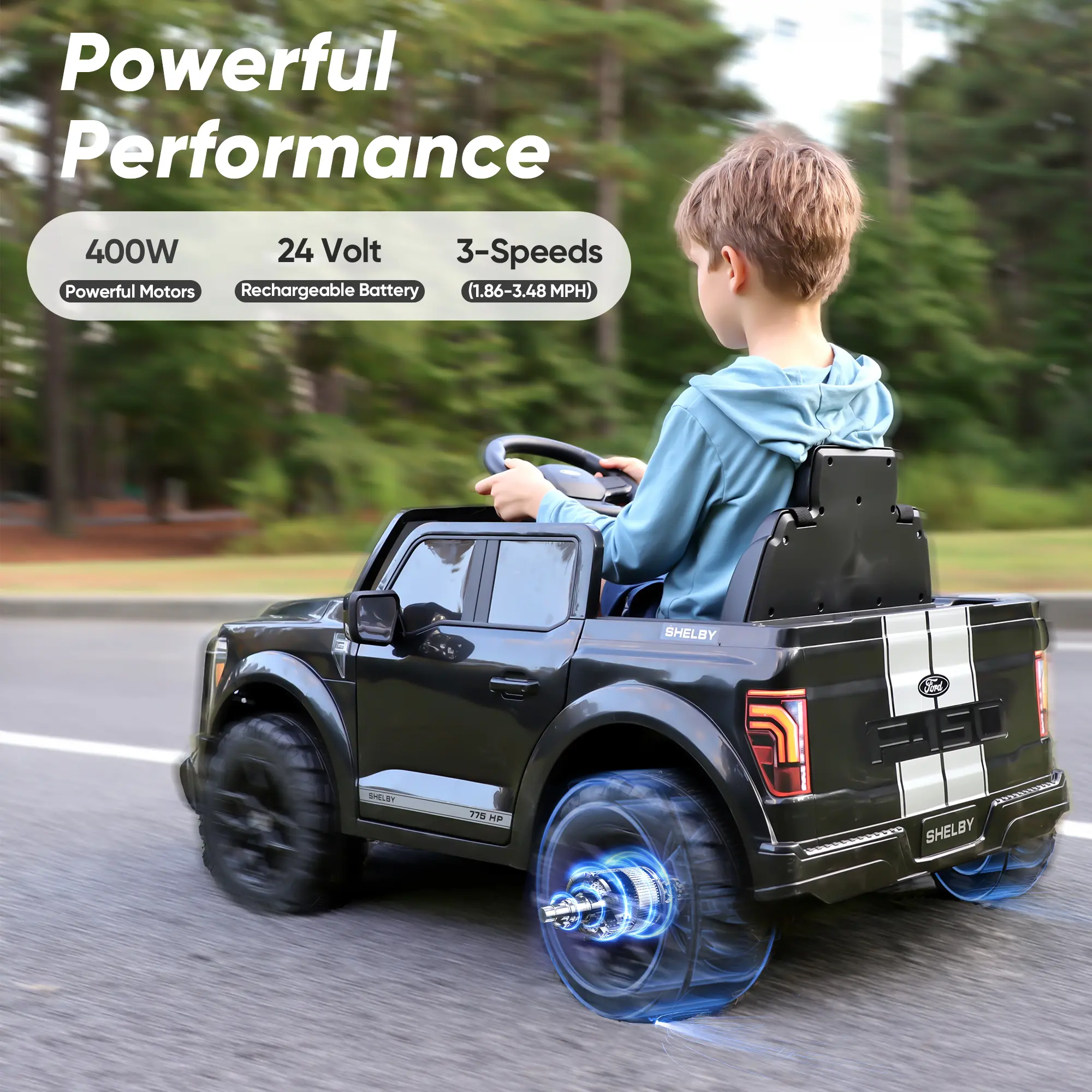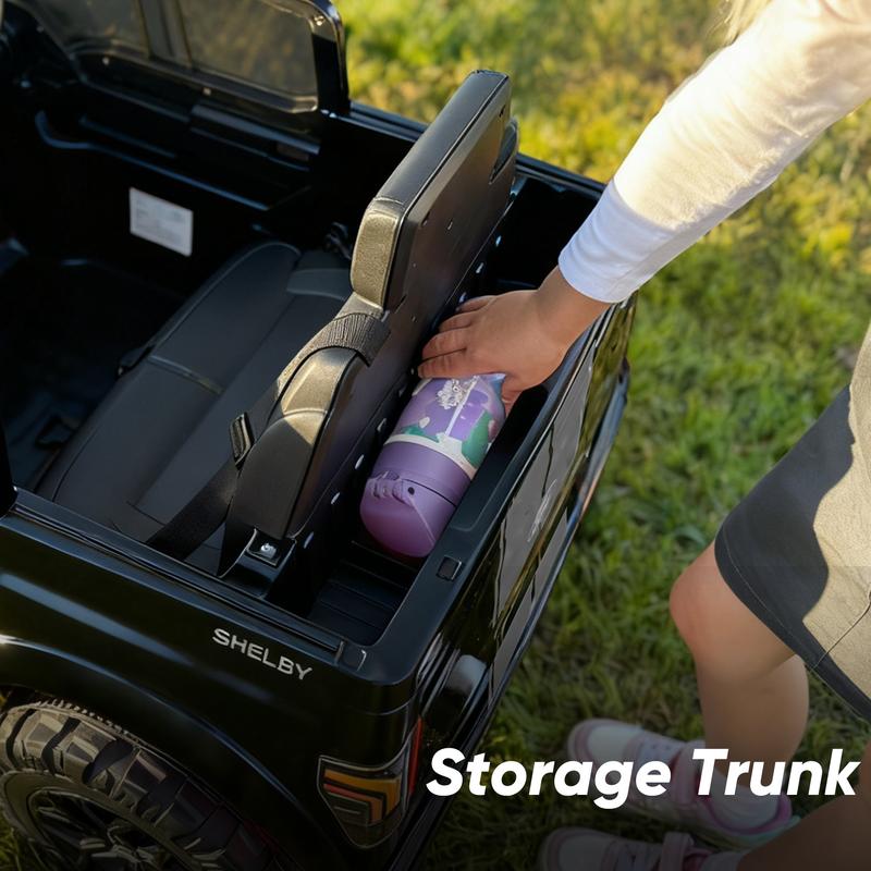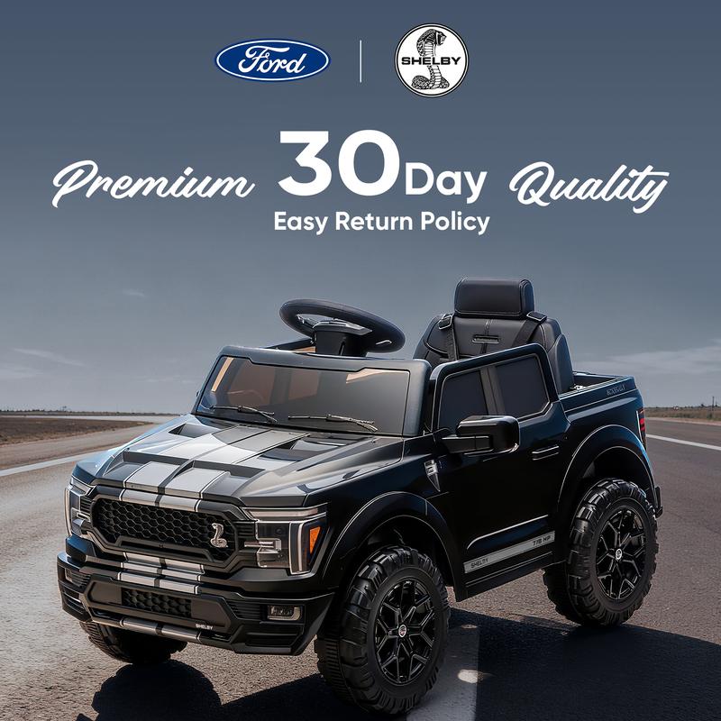 Engineered for thrilling adventures, this officially licensed Ford-Shelby F-150 ride on truck toys for girls & boys combines breathtakingly realistic styling with high-performance. This battery powered riding toys powered by dual 200W motors and a 24V battery system, delivering impressive speeds of 1.86-4 mph and up to 90 minutes of continuous runtime. Parental peace of mind, the ride on cars with remote control is guaranteed with a secure three-point safety harness and a worry-free 30-day return policy backing its stable quality. Beyond the power, our electric ride on vehicles for kids aged 2 3 4 5 years old packed with fun: cruise in style with built-in Bluetooth music and utilize the functional trunk for gear. Offering both remote and manual driving, this 24 volt kids ride on toys cars the ultimate gift for aspiring young drivers.
