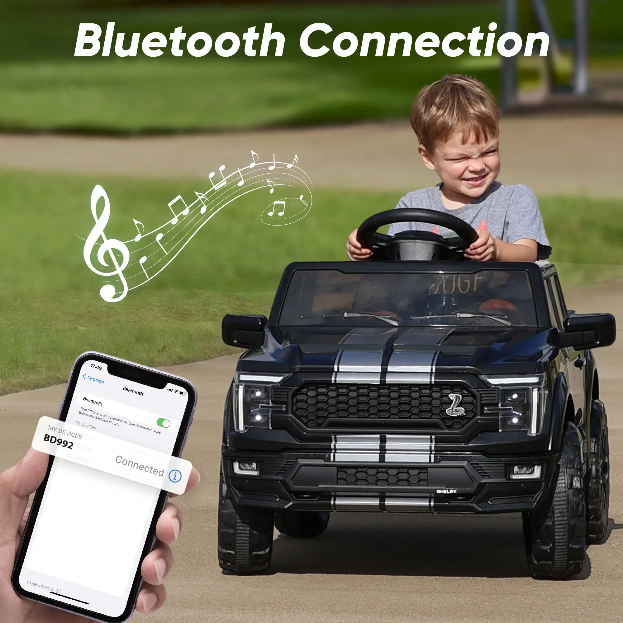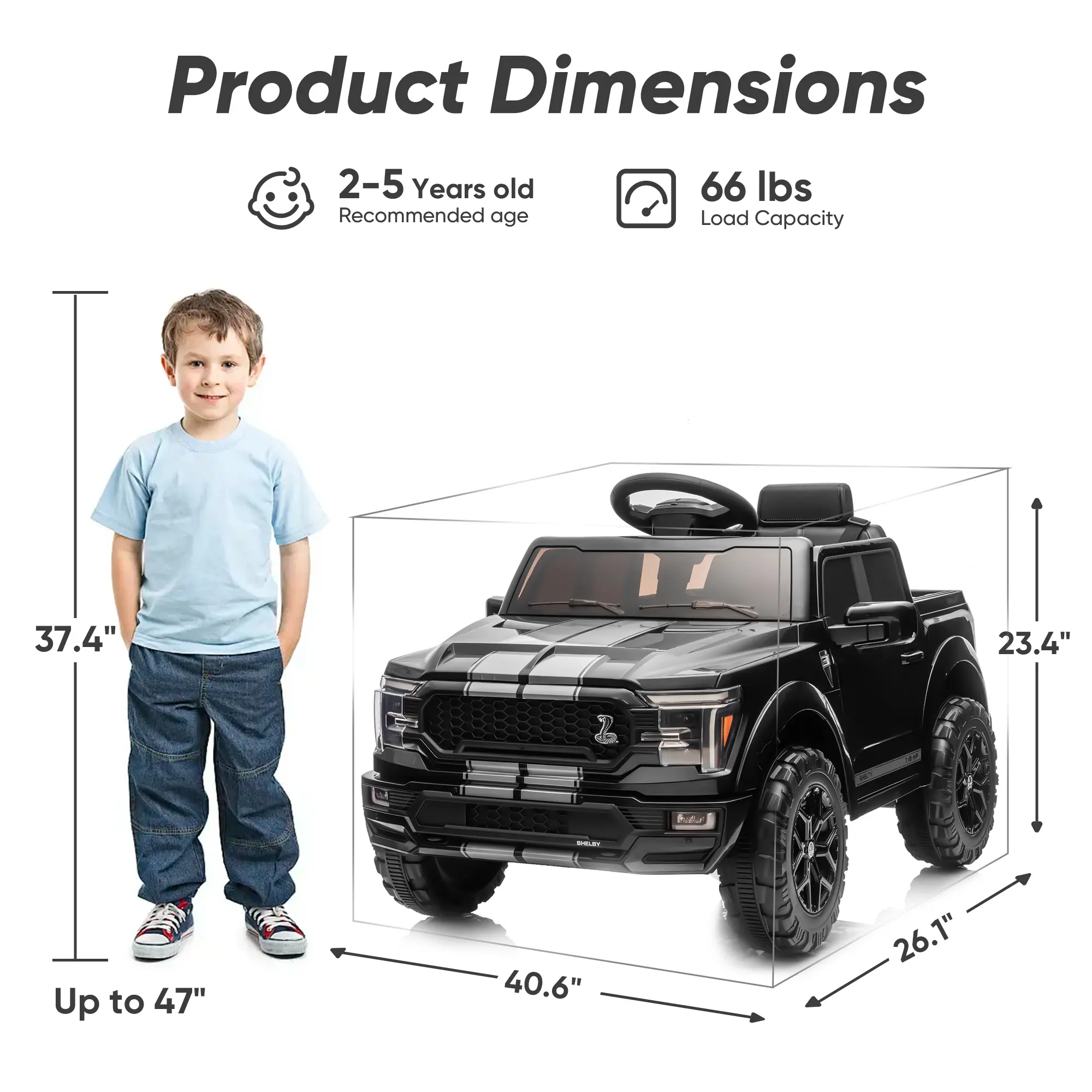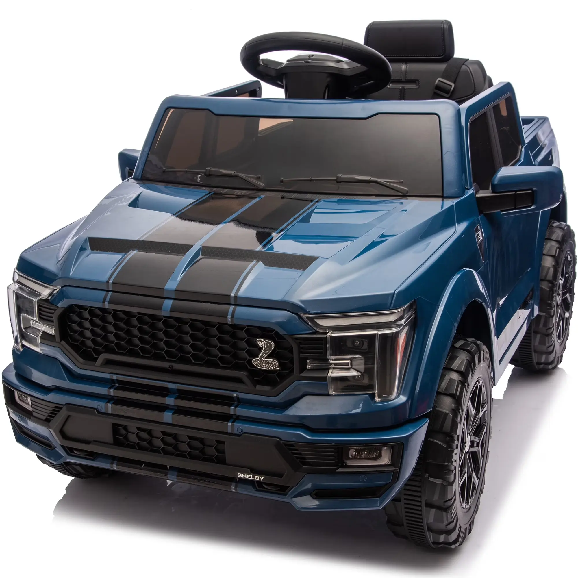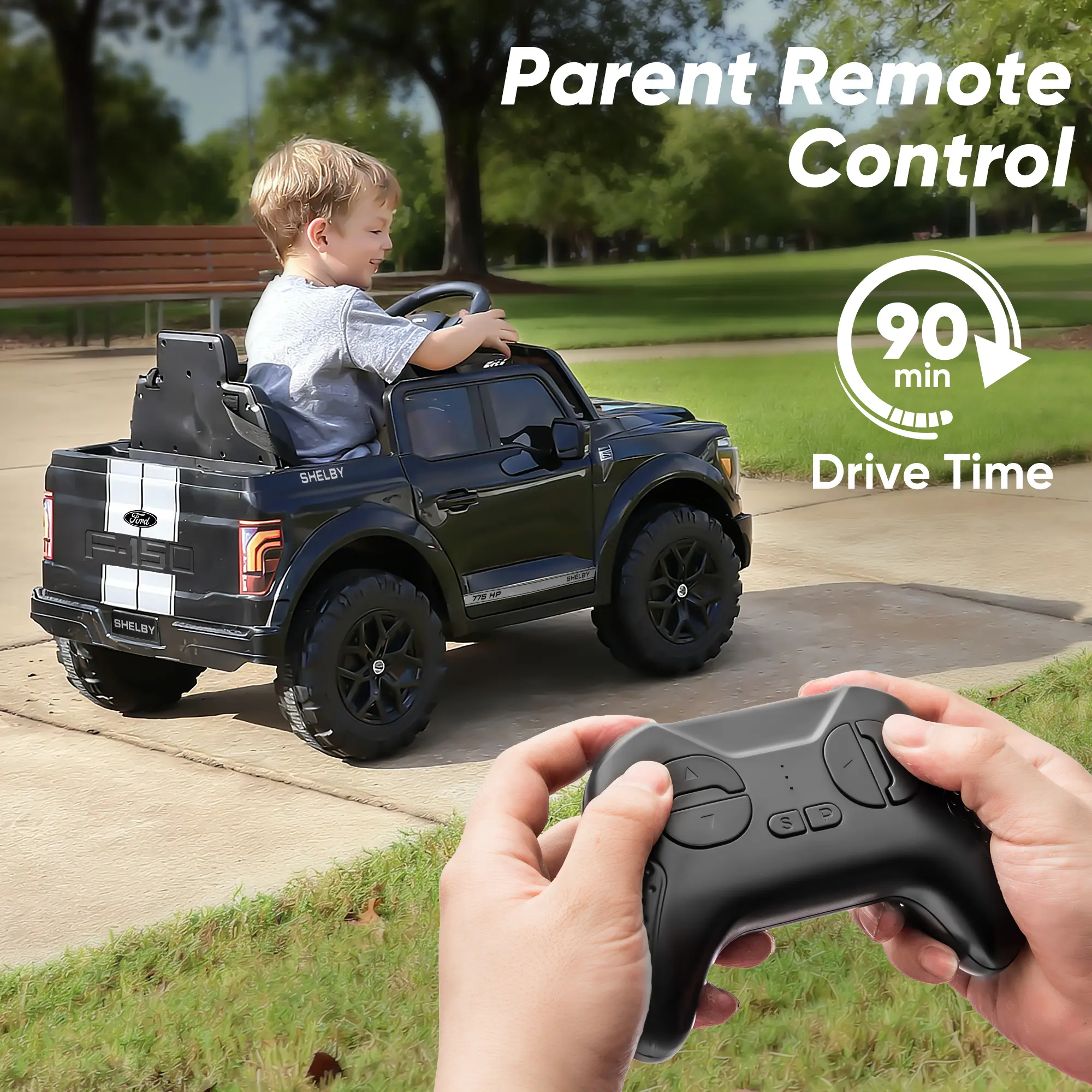Engineered for thrilling adventures, this officially licensed Ford-Shelby F-150 ride on truck toys for girls & boys combines breathtakingly realistic styling with high-performance. This battery powered riding toys powered by dual 200W motors and a 24V battery system, delivering impressive speeds of 1.86-4 mph and up to 90 minutes of continuous runtime. Parental peace of mind, the ride on cars with remote control is guaranteed with a secure three-point safety harness and a worry-free 30-day return policy backing its stable quality. Beyond the power, our electric ride on vehicles for kids aged 2 3 4 5 years old packed with fun: cruise in style with built-in Bluetooth music and utilize the functional trunk for gear. Offering both remote and manual driving, this 24 volt kids ride on toys cars the ultimate gift for aspiring young drivers.