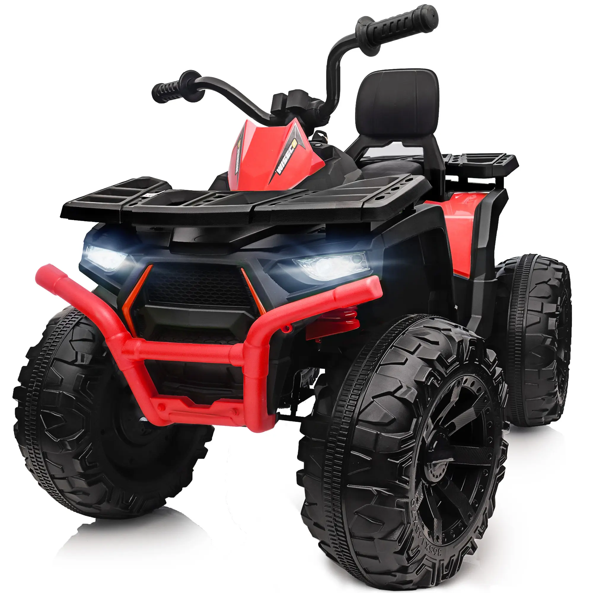 SIMULATION ATV DESIGN: Are you looking for an exciting kid's electric quad? This kids 4 wheeler battery powered features an eye-catching off-road appearance, front and rear LED lights, and a music player. 4 Large rugged and durable wheels are suitable for various terrains, making it the perfect gift for adventure-loving kids.