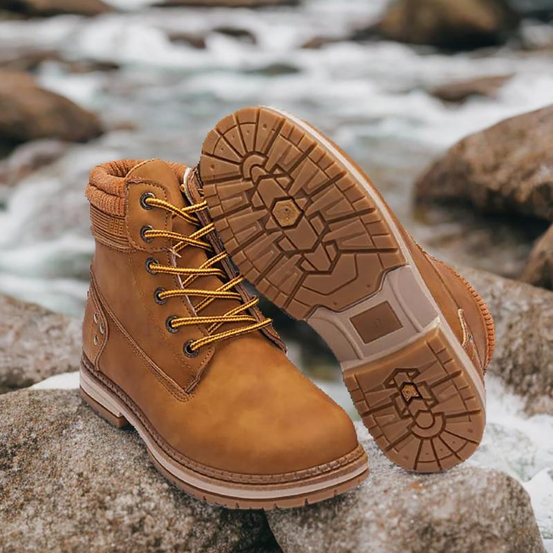 ·Move easily from urban to wilderness, the lace up hiking boots improved with durable waterproof leather, comfy padded collar, and metal eyelet create an eye catching effect