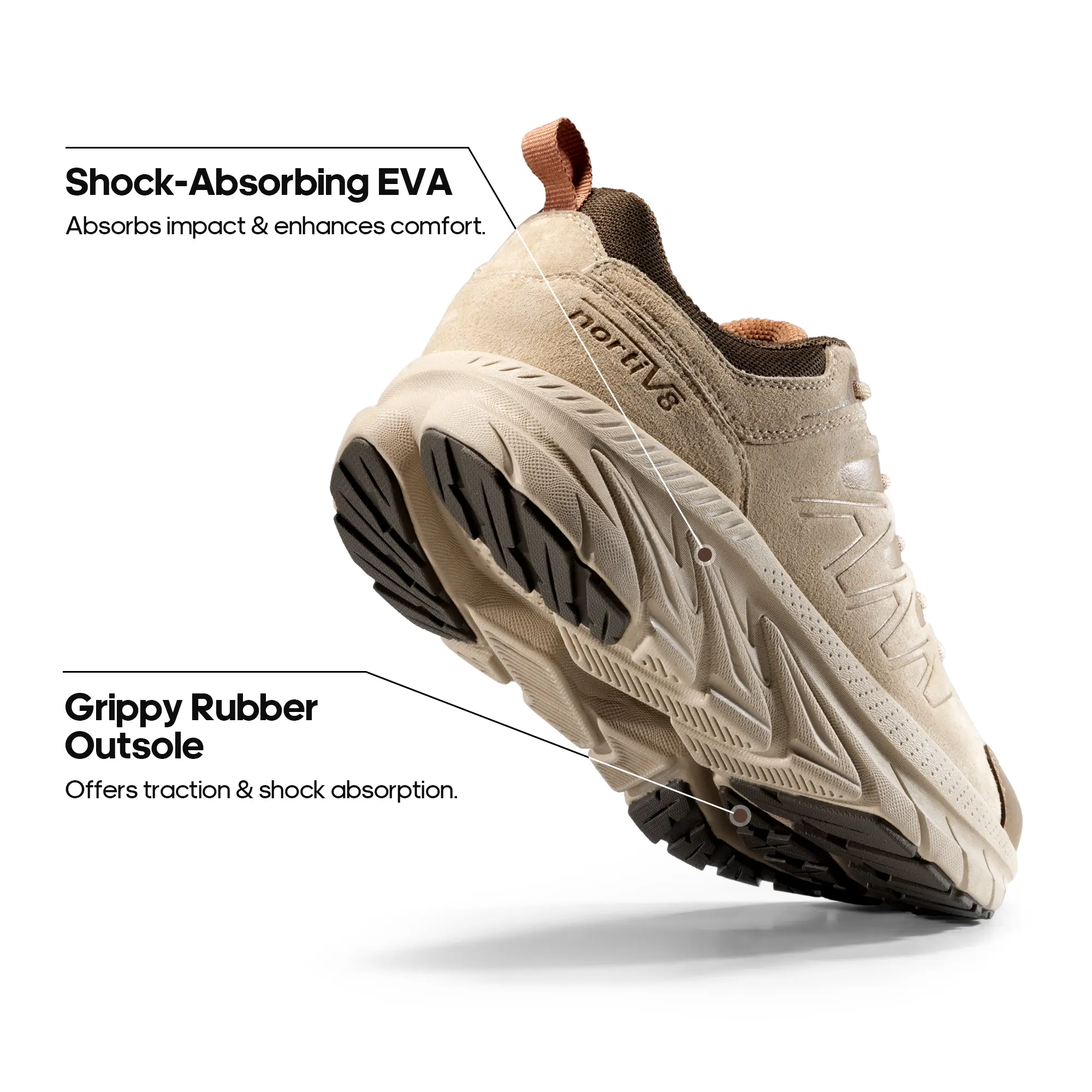 ·Stability & Protection: The combination of shock-absorbing EVA midsole and durable rubber outsole not only cushions your feet from impact but also provides reliable traction.