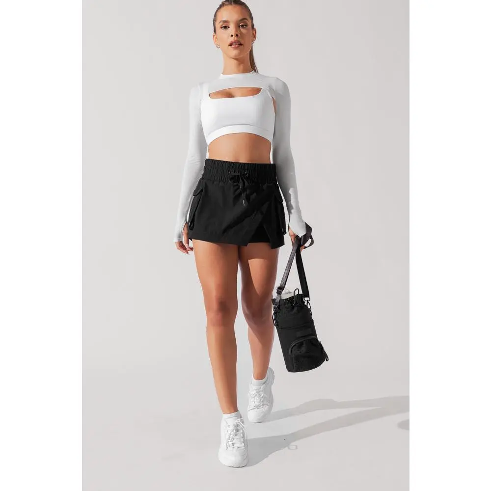• Flirty asymmetric side skirt opening