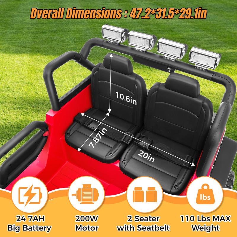 ·Flexible Seating OptionsChoose the perfect model for your family:Dual Seat Version: Features a spacious 20-inch seat that comfortably fits two children, supporting up to 135 lbs—ideal for siblings or shared playtime.Single Seat Version: Designed for one child with an upgraded seat belt and enhanced motor power for thrilling solo adventures.