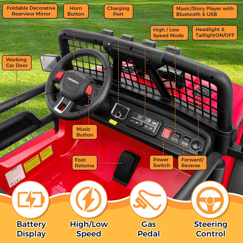 ·Interactive Entertainment SystemEquipped with a music player, customizable Bluetooth/MP3 options (depending on the model), easy-access buttons, and volume control. Keeps kids engaged with a fun, immersive driving experience.