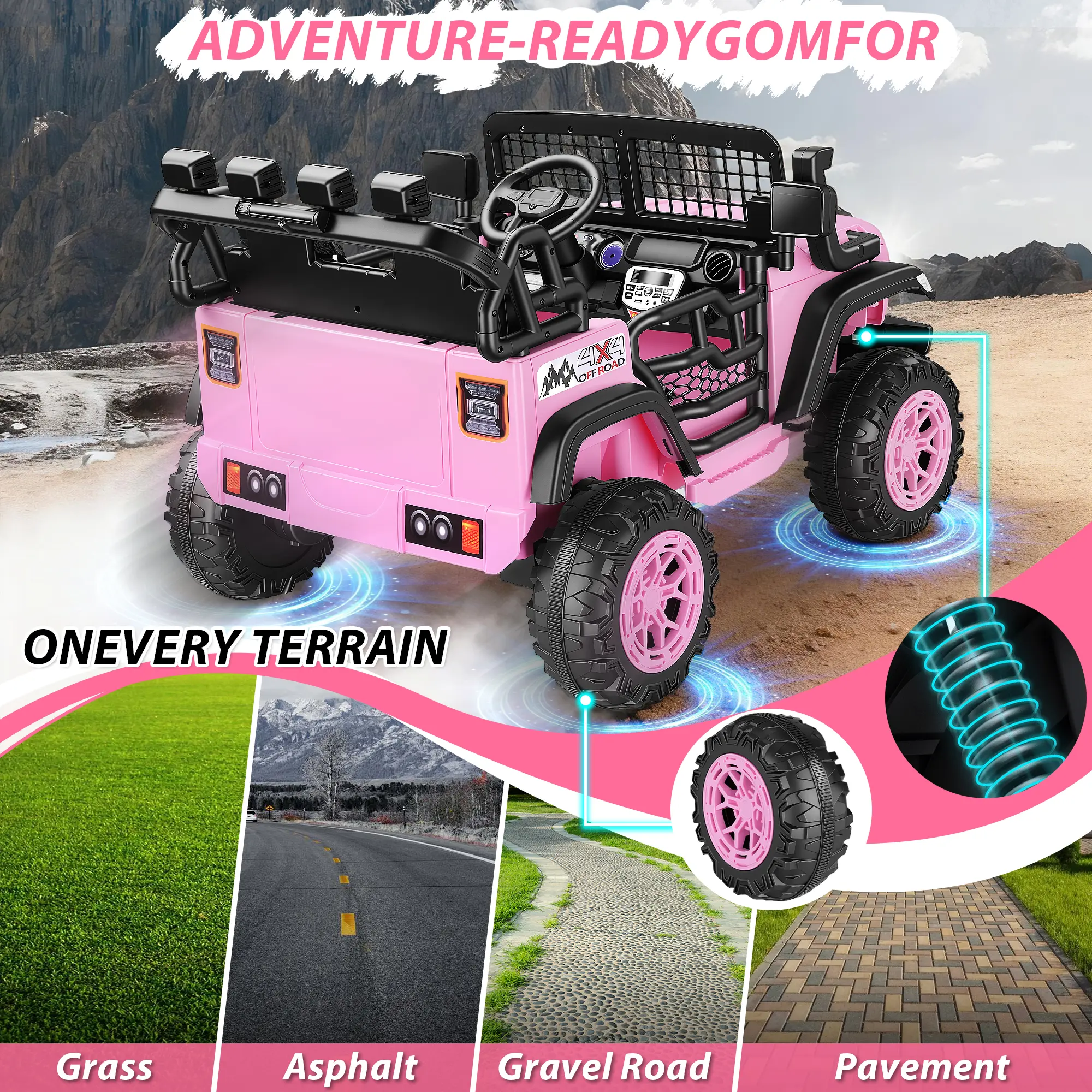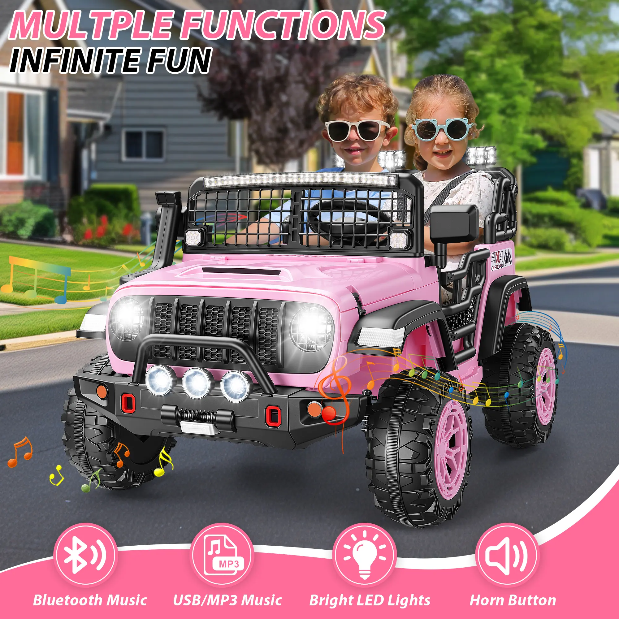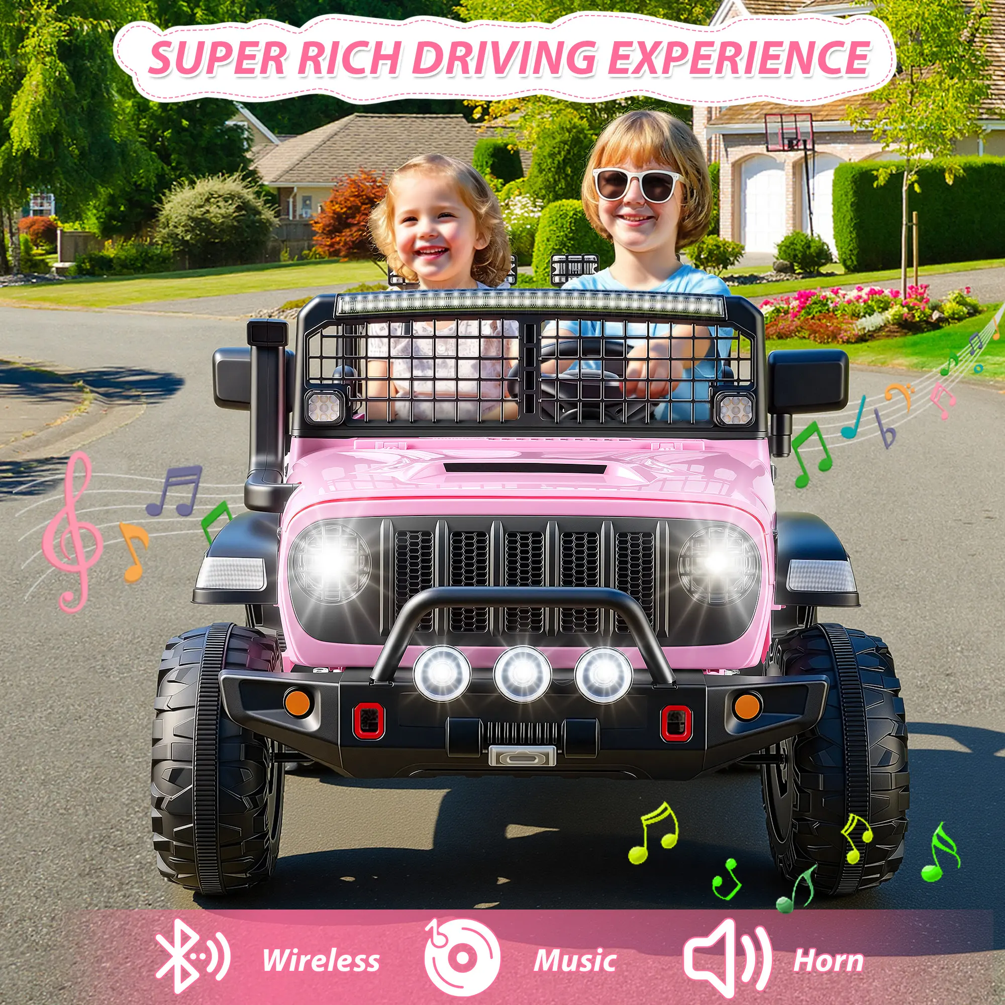 ·Immersive & Realistic Driving ExperienceBuilt to impress, this 24V electric truck includes double-opening doors, 4-wheel spring suspension, a realistic steering wheel, horn sounds, bright LED headlights, and Bluetooth music playback—creating an engaging and lifelike driving experience every time.