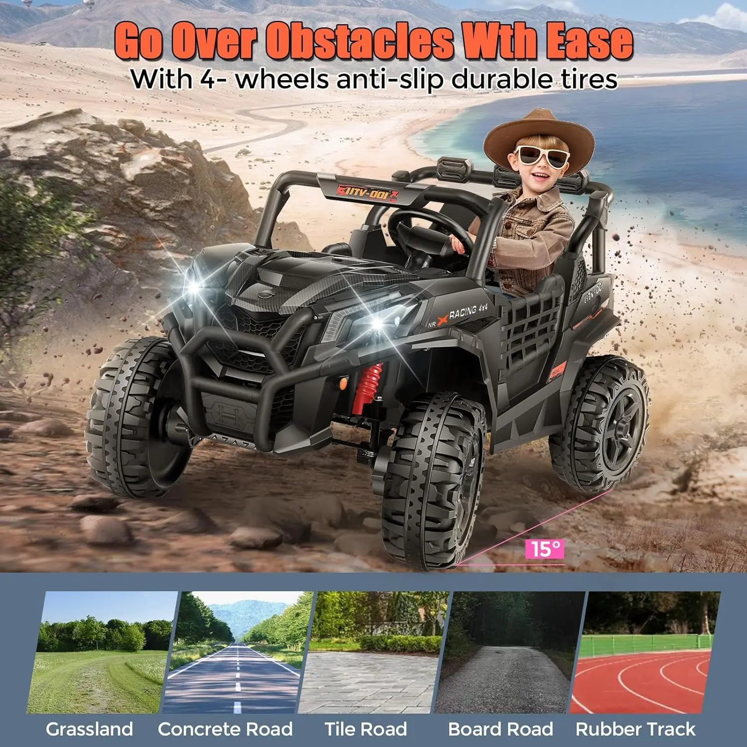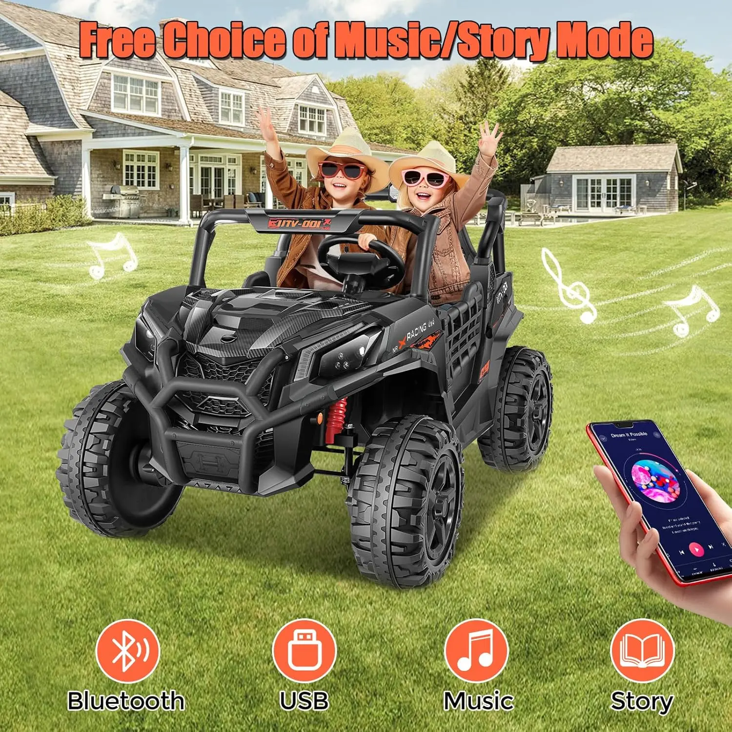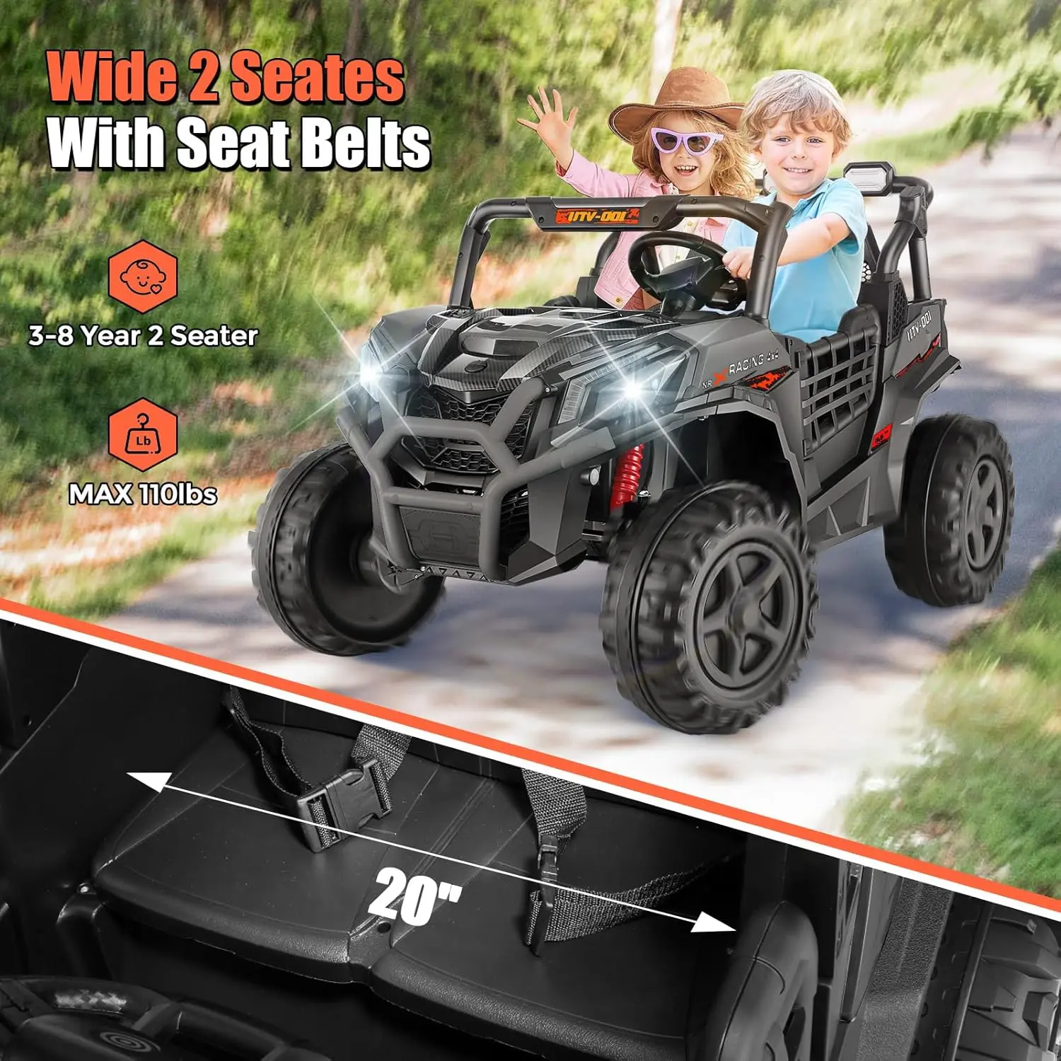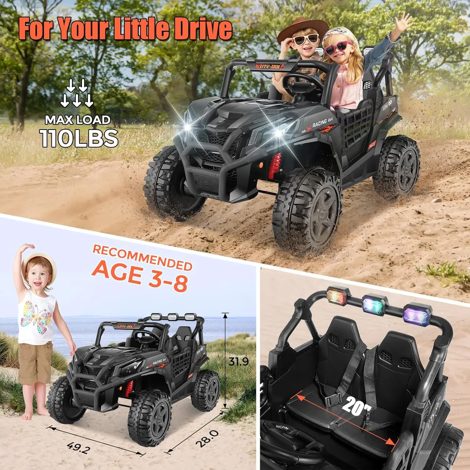 ·Advanced Safety Features:Designed with adjustable seat belts, secure door locks, and spring suspension, ensuring a smooth, comfortable, and safe ride for your little ones.