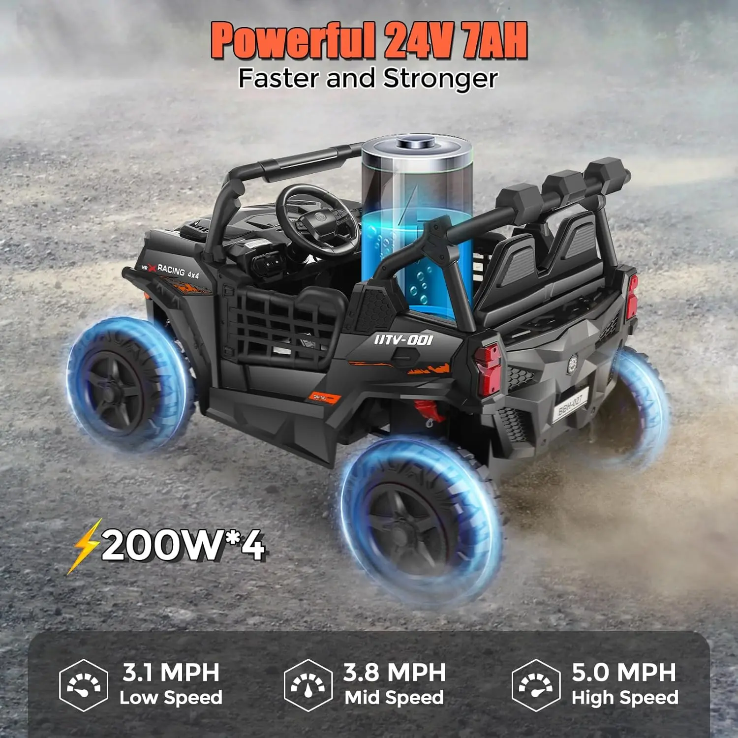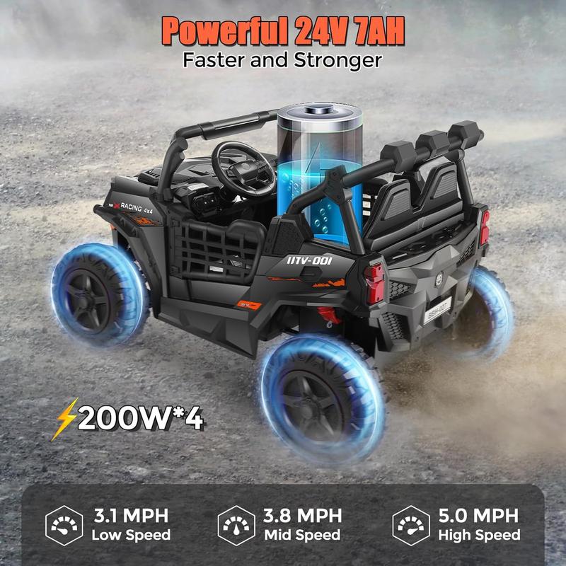 ·High-Performance Design:Powered by a 24V rechargeable battery and dual 100W motors, this ride-on car delivers reliable performance at safe speeds of 1.0–2.5 MPH, ideal for young adventurers exploring indoors or outdoors.