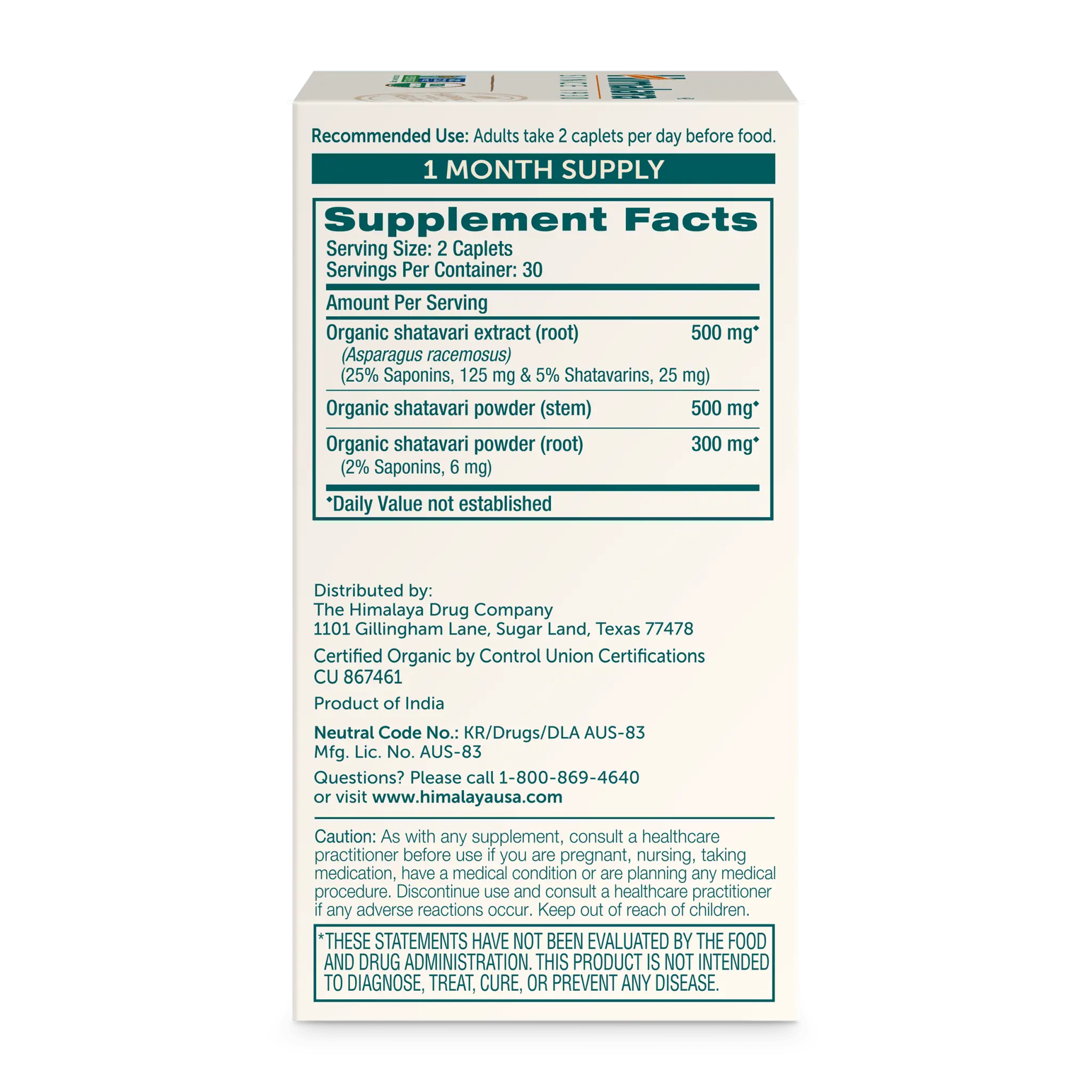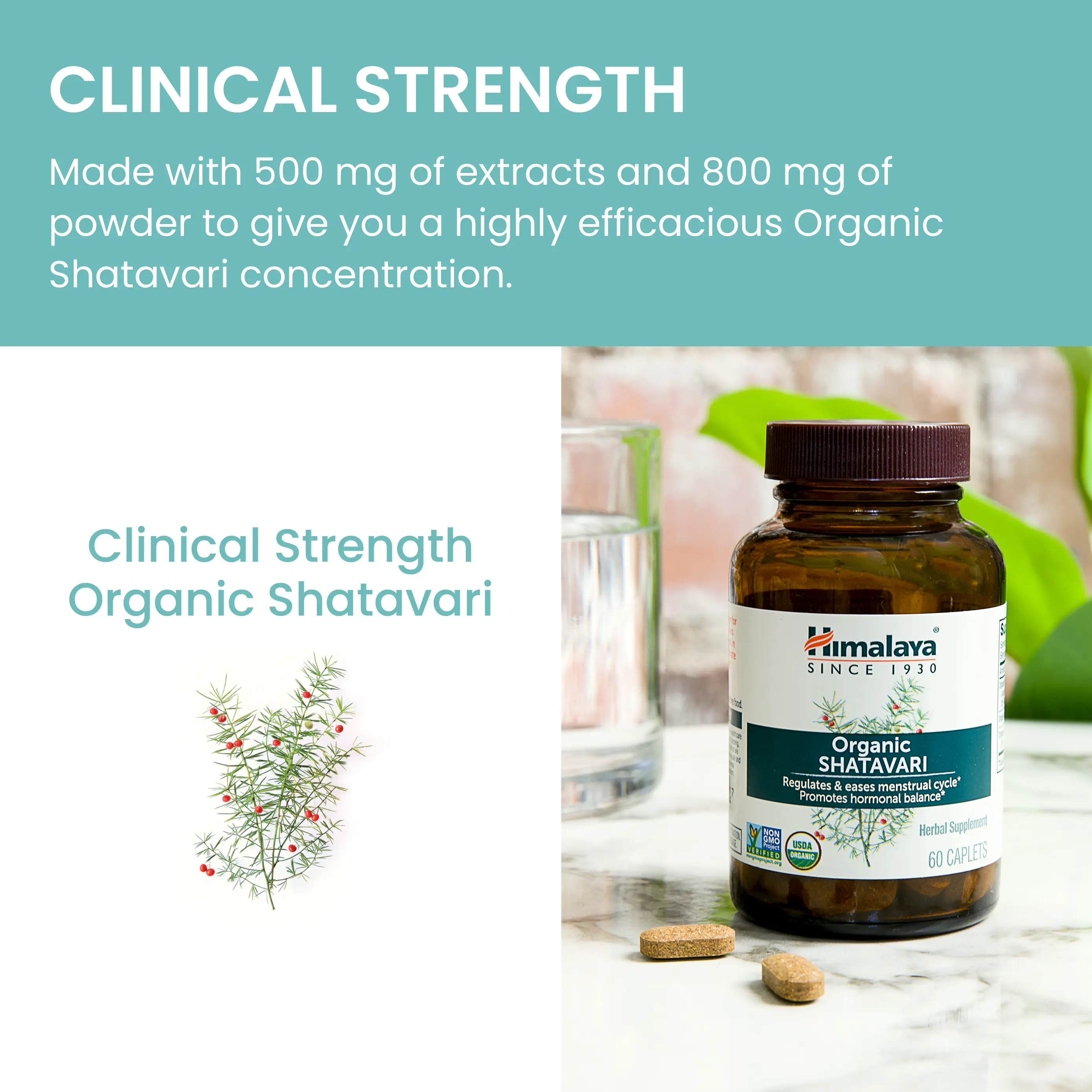 Himalaya Organic Shatavari - Promotes Hormone Balance for Women and Menstrual Cramp Relief - USDA Organic, Vegan, Gluten Free, 1300 mg, 60 Caplets