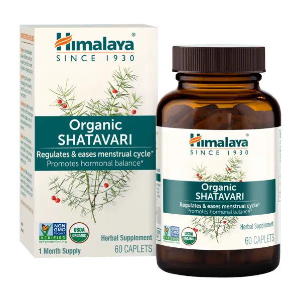 5. Himalaya Organic Shatavari - Promotes Hormone Balance for Women and Menstrual Cramp Relief - USDA Organic, Vegan, Gluten Free, 1300 mg, 60 Caplets