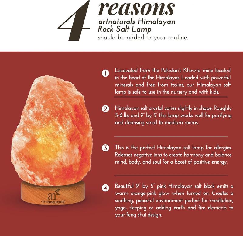 Bring the beauty of nature into your home with the Artnaturals Himalayan Rock Salt Lamp. Hand-carved from pure pink salt crystal, this lamp offers a natural glow that is perfect for rest, relaxation, and energy.