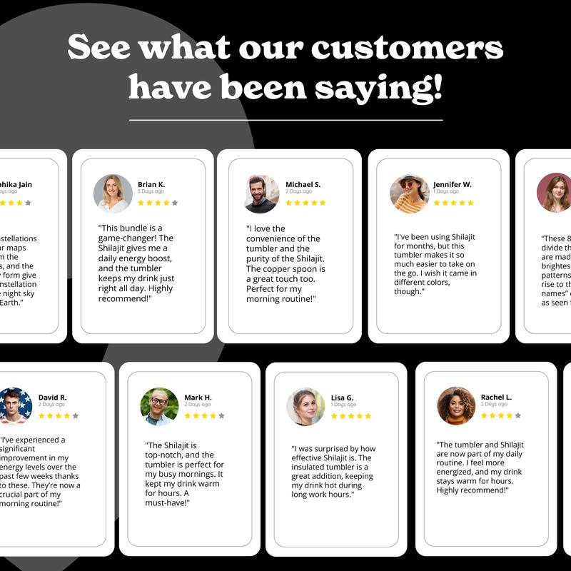 ·The tumbler's stainless steel design will help keep your Shilajit hot or cold, depending on how you like your Shilajit, for 8 hours.
