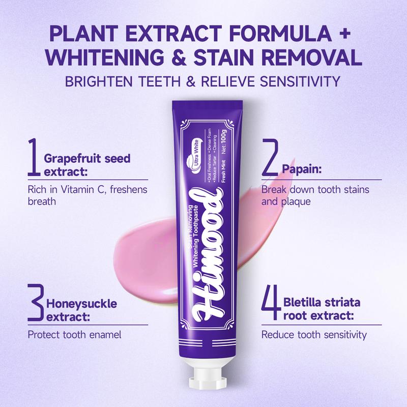 ✨ Himood Botanical Fusion for gum care offers a gentle yet potent blend with natural extracts. It provides soothing care and strengthens gums, revealing your smile's natural radiance. The 100g tube ensures deep cleaning and stain removal. Perfect for those seeking brighter teeth and gum health.