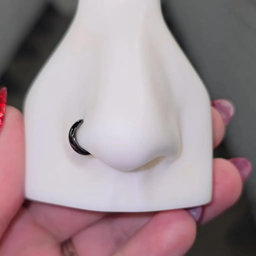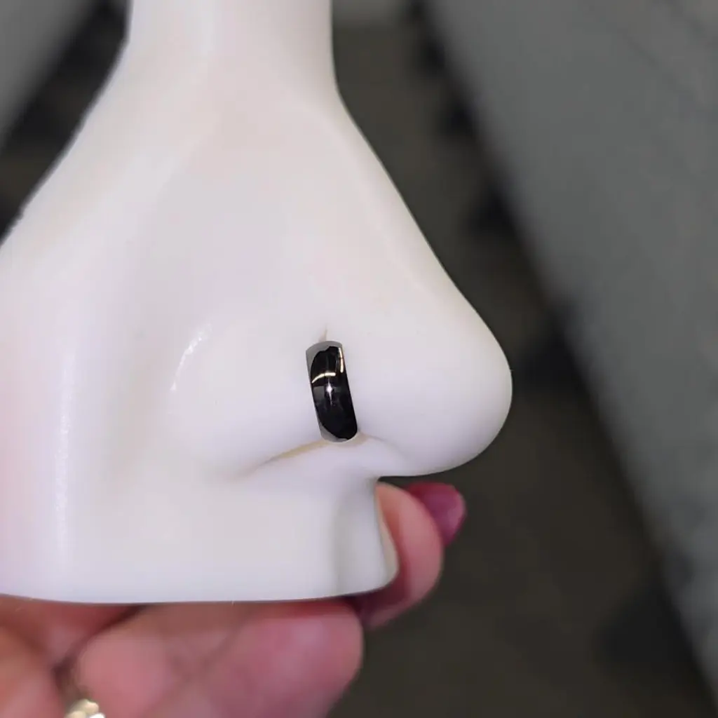 The most perfect nose ring!!! Absolutely my favorite I have them in every color… Even purchase them for my husband and mother because they seen mine and love it as well❤️ order mine in 20g size 8mm. This nose ring it’s unique but most importantly different it’s thick and stands out from any other!!