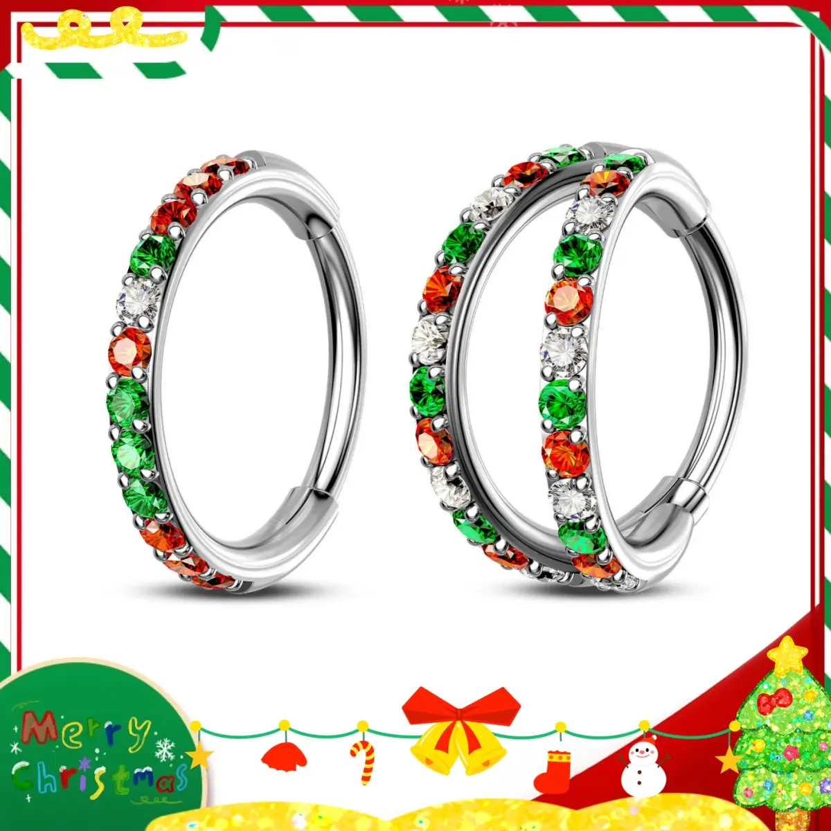 2Pcs Double Christmas Rings, 7mm, 20G