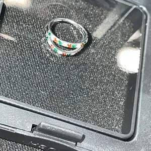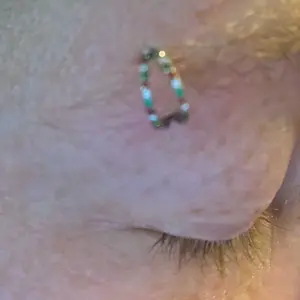 I was so exited to get my new hoop in but when it arrived it looked like it wouldn’t even fit somehow it managed to get it on even though it looked like the size for a baby doll. The rhinestone look like they’re microscopic! All pictures have been heavily zoomed in! Pics look 10x better than person!