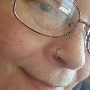 Great little nose ring! It hugs the nose perfectly!! it’s not to big and very easy to put in… and it’s absolutely beautiful!!