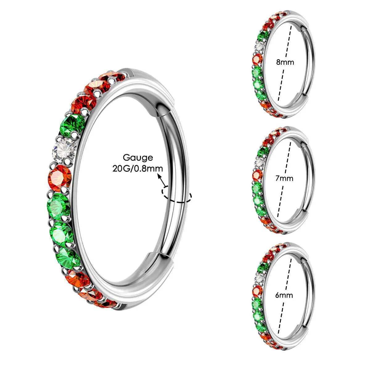 I got 8mm 20 g & it fits perfectly, not to tight & not to loose. ITS SOOO PRETTY! Now I need the single hoop one ❤️💚