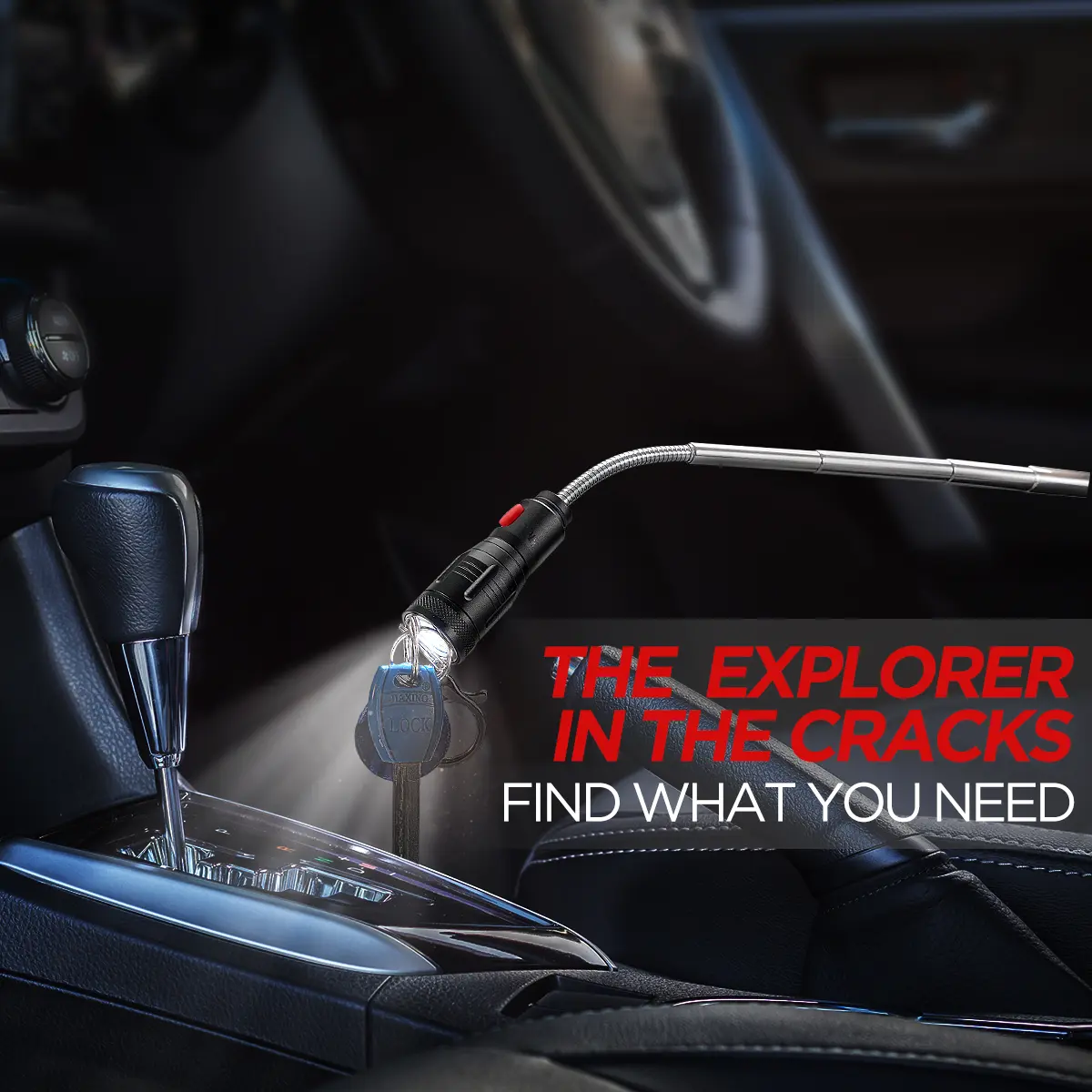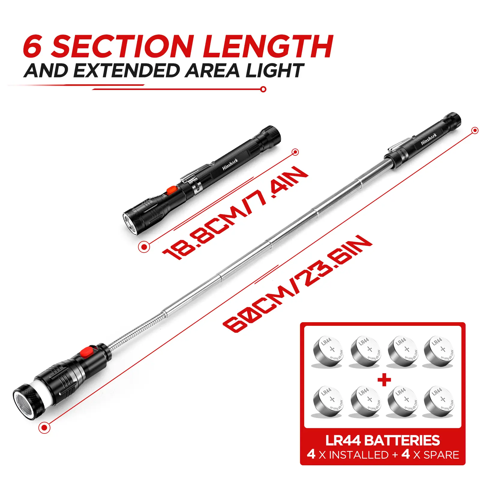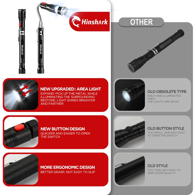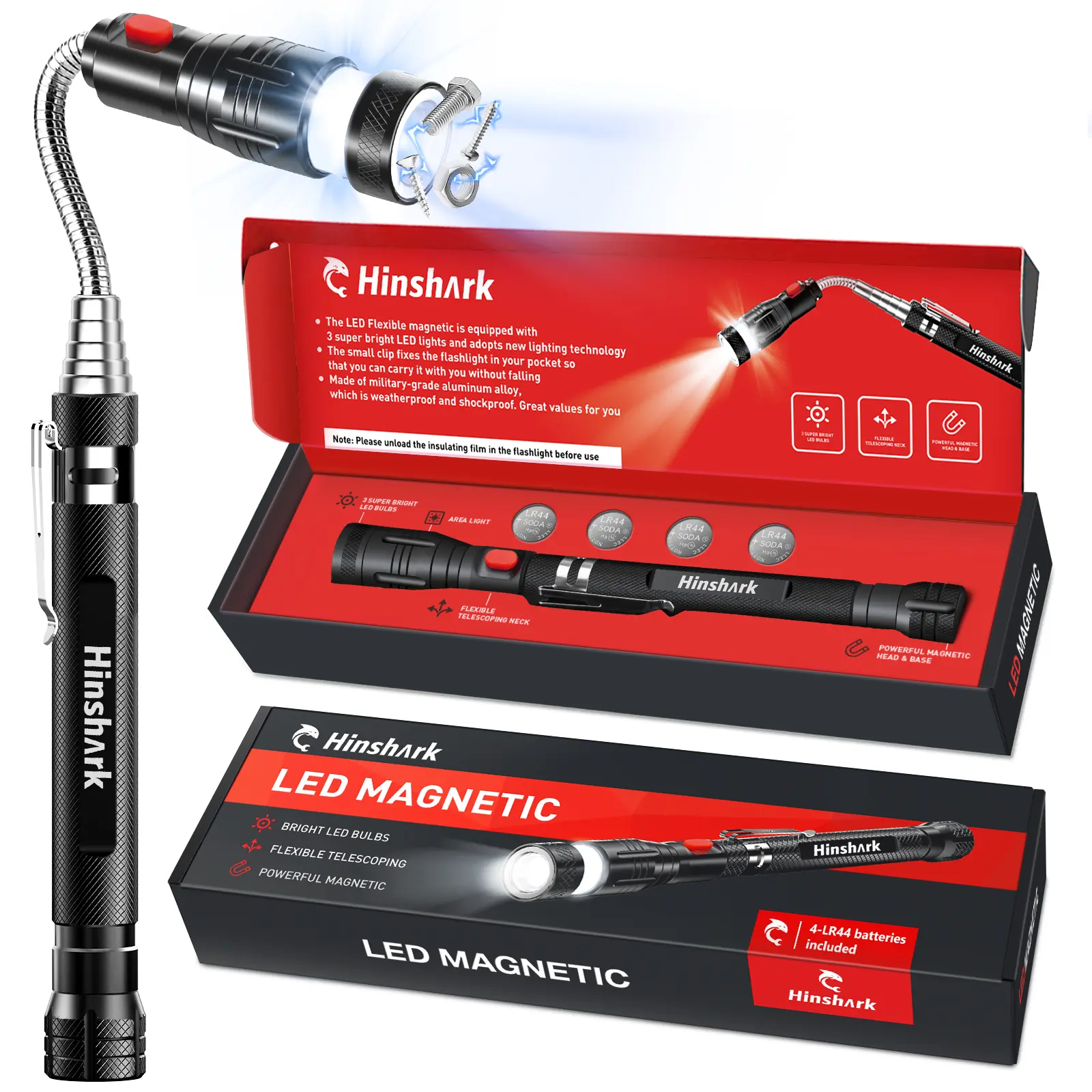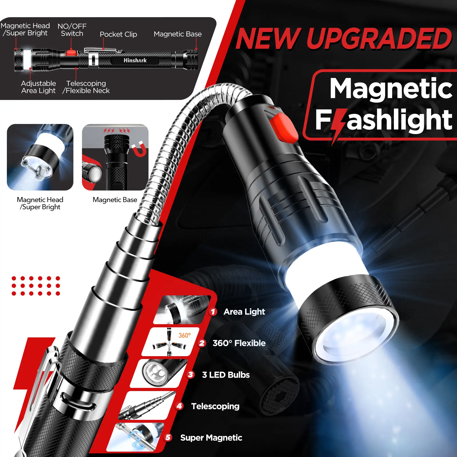 Equipped with 3 super bright LED lights, this flexible and rotatable magnetic flashlight easily meets daily lighting needs. With 360° rotation and an extendable design, it focuses light precisely where needed and reaches dark, narrow areas effortlessly.