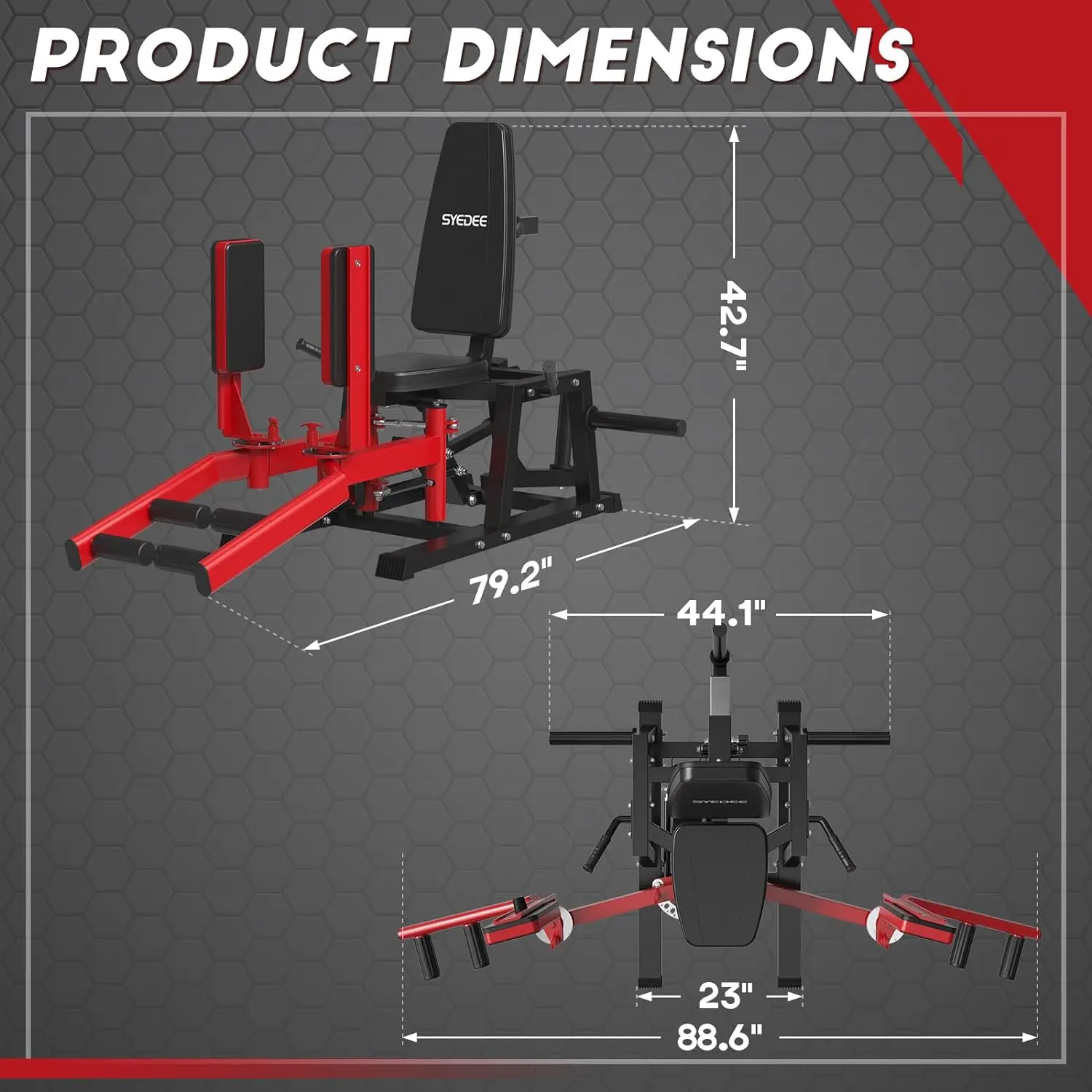 The Syedee Hip Abductor Machine is made of solid steel and high-density dual-layer padding, providing stable support for proper posture during workouts. This robust design reduces the risk of injury and ensures a safe training experience. The machine weighs 176 pounds and measures 79.2" (L) x 44.1" (W) x 42.9" (H).