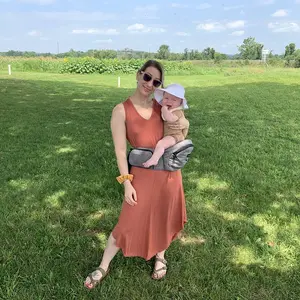 After experiencing back and shoulder pain, I was looking for an infant carrier that would make it easier to carry my baby around. The Tushbaby is perfect since it is very sturdy and much simpler to put on compared to other carriers with multiple straps. Now I can hold baby with one arm and use the Tushbaby to feed, play, and walk more comfortably — with support from the stylish and durable hip carrier.