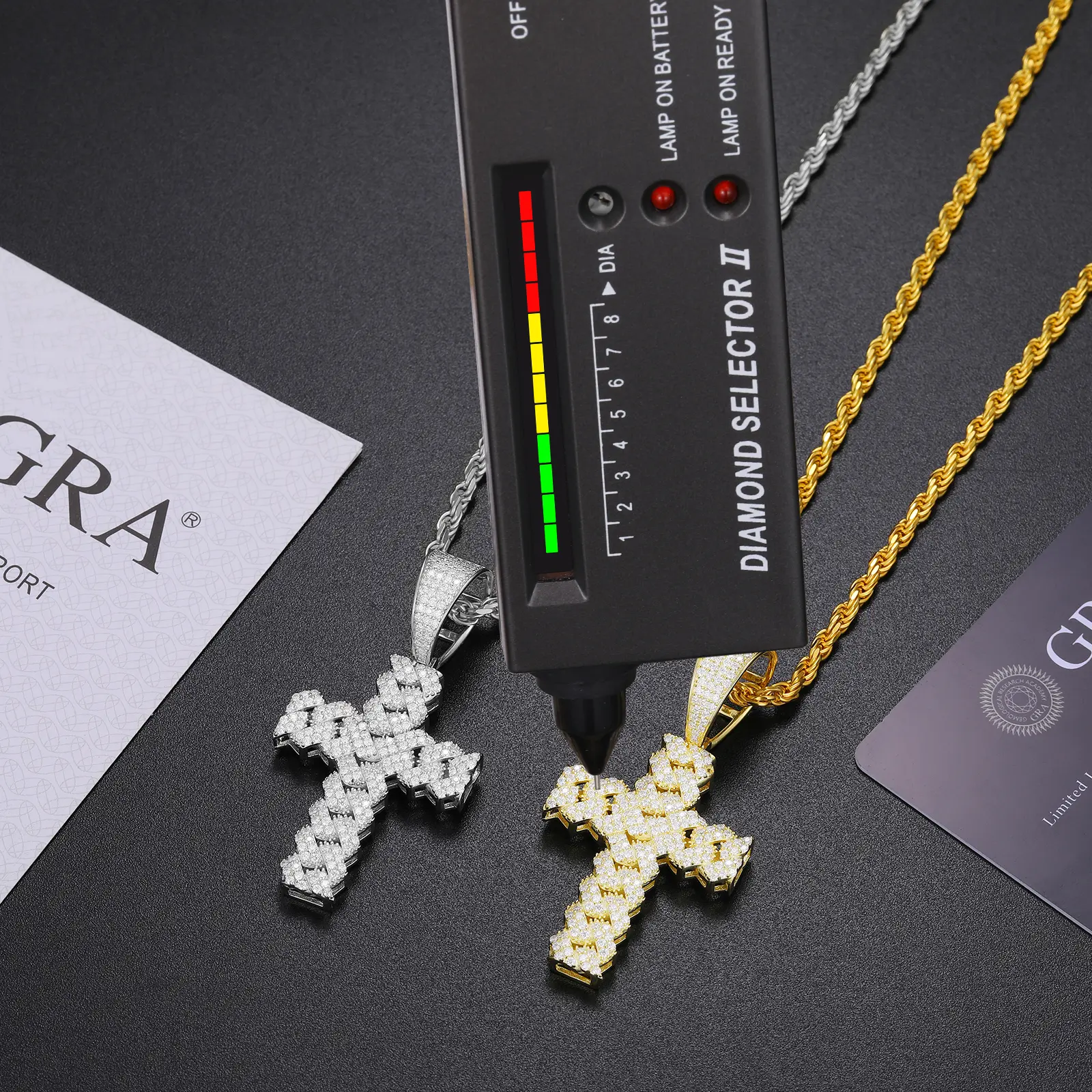 The cross came in a few days before expected, very good packaging box at minor dents but nothing bad the cross is very shiny comes with gra certification only issue with it is that it seems to be missing one small stone in the middle but other then that it’s nice.