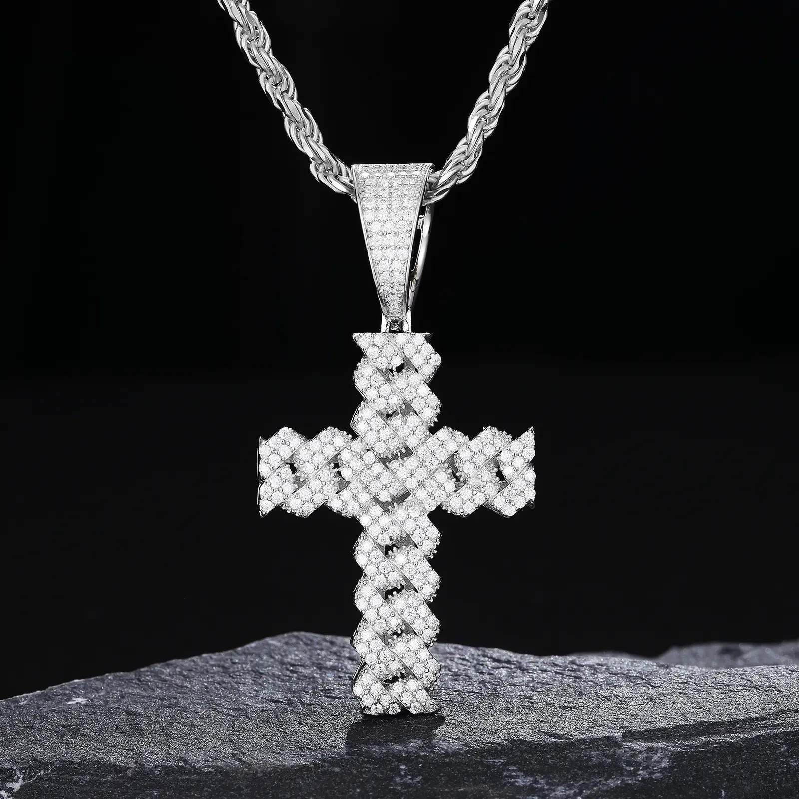 Amazing discreet, not too flashy, and not too shuttle size Cuban pendant. Quality is amazing true 925 silver, has not tarnished, and very durable. Of coarse the moissanite shines differently, and is very noticeable in all light settings it seems. Excellent craftsmanship.